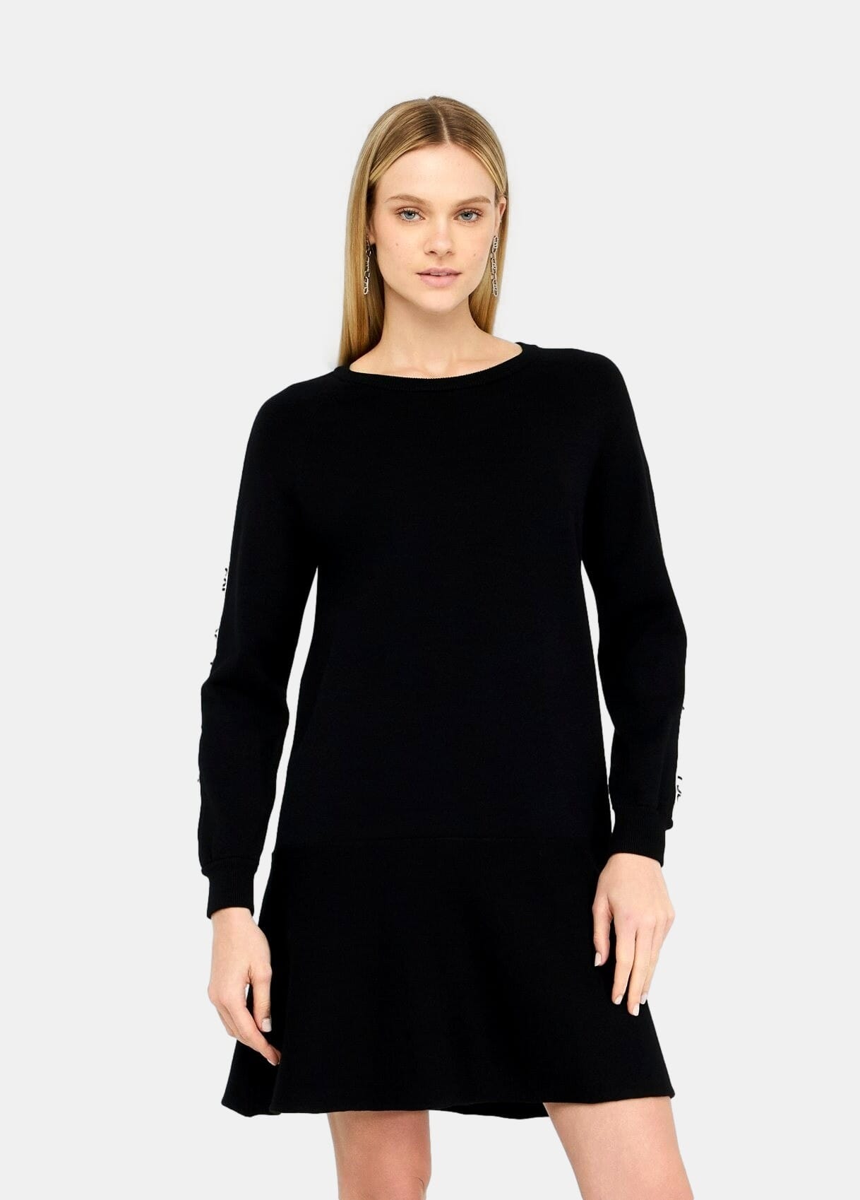 Abito corto in maglia di misto viscosa,logo jacquard sulle maniche,taglio girocollo,prodotto ecosostenibile.