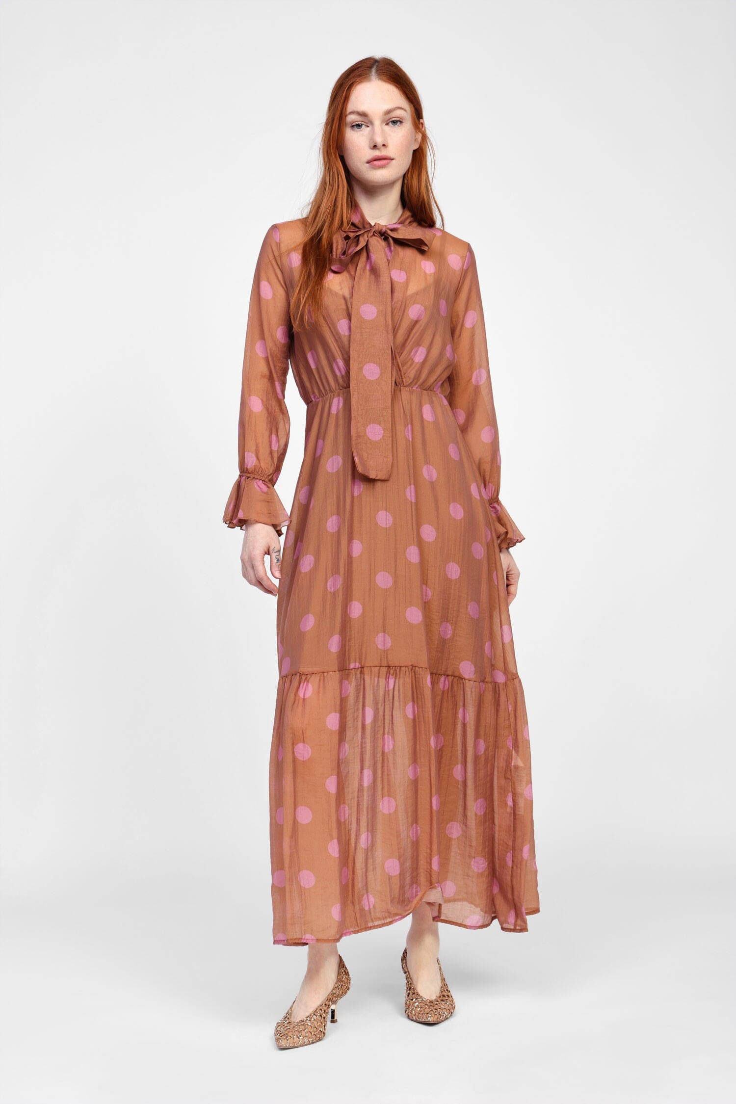 Prezzi ridotti! Abito Lungo A Pois Con Tie-Neck E Volant Dixie Espandi