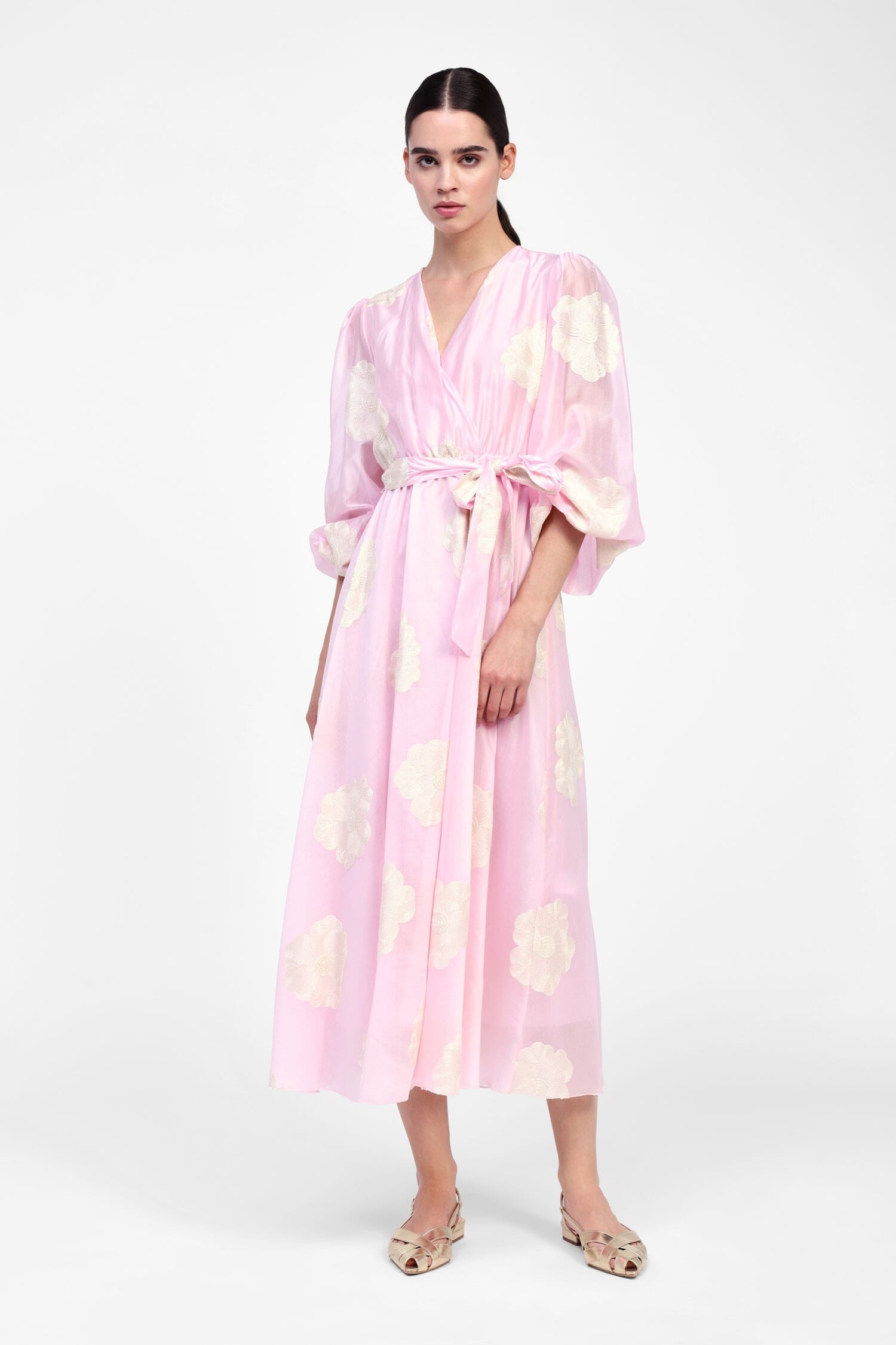 Un abito lungo pensato per chi ama distinguersi con sobrietà. Il suo scollo a v e le maniche lunghe donano una linea fluida che si accompagna armonicamente con una cintura in vita. Il motivo stampato aggiunge un tocco originale, perfetto per essere indossato nella vita di tutti i giorni con un tocco di classe.
