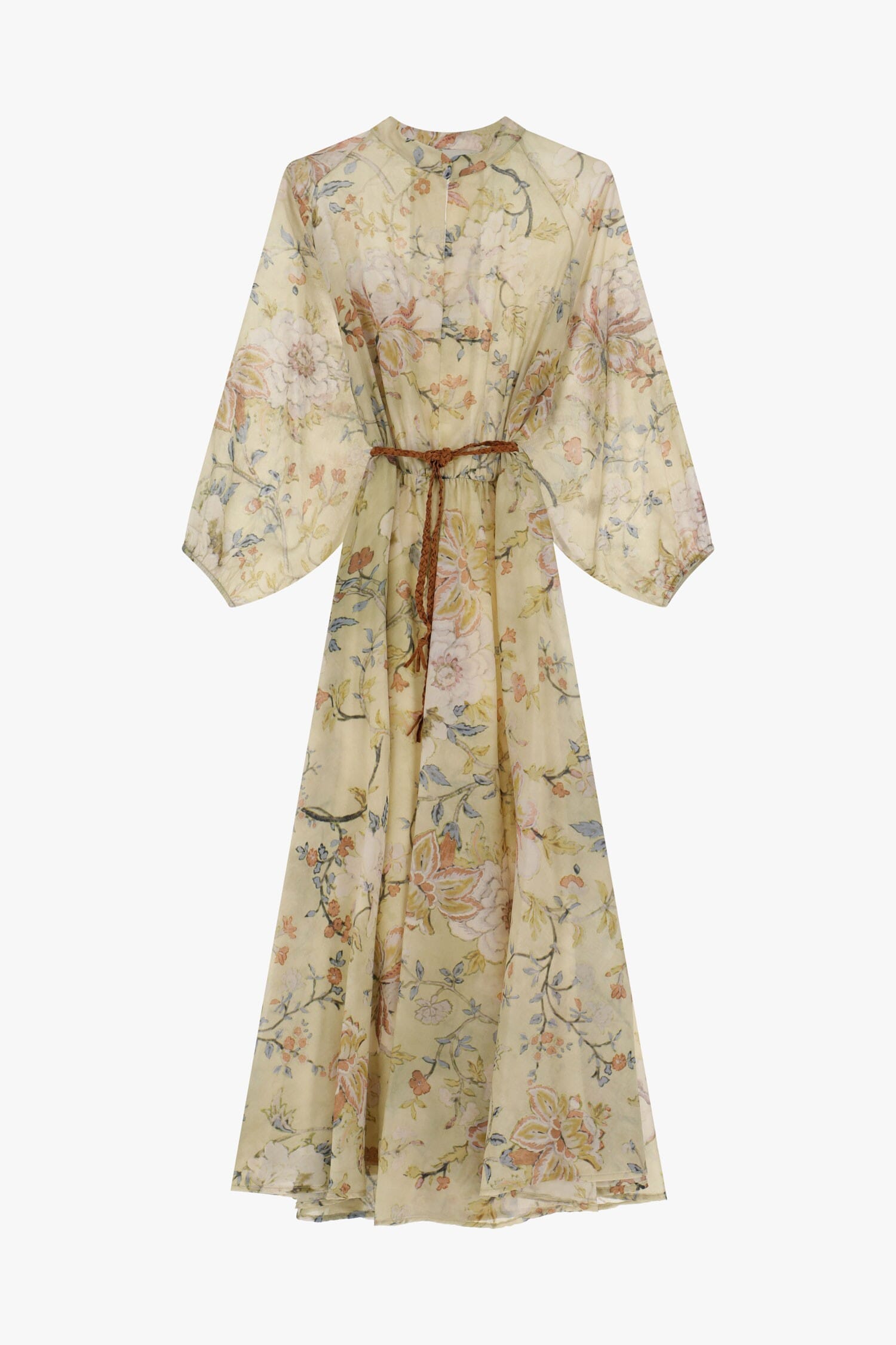 Abito lungo con stampa floreale e cintura