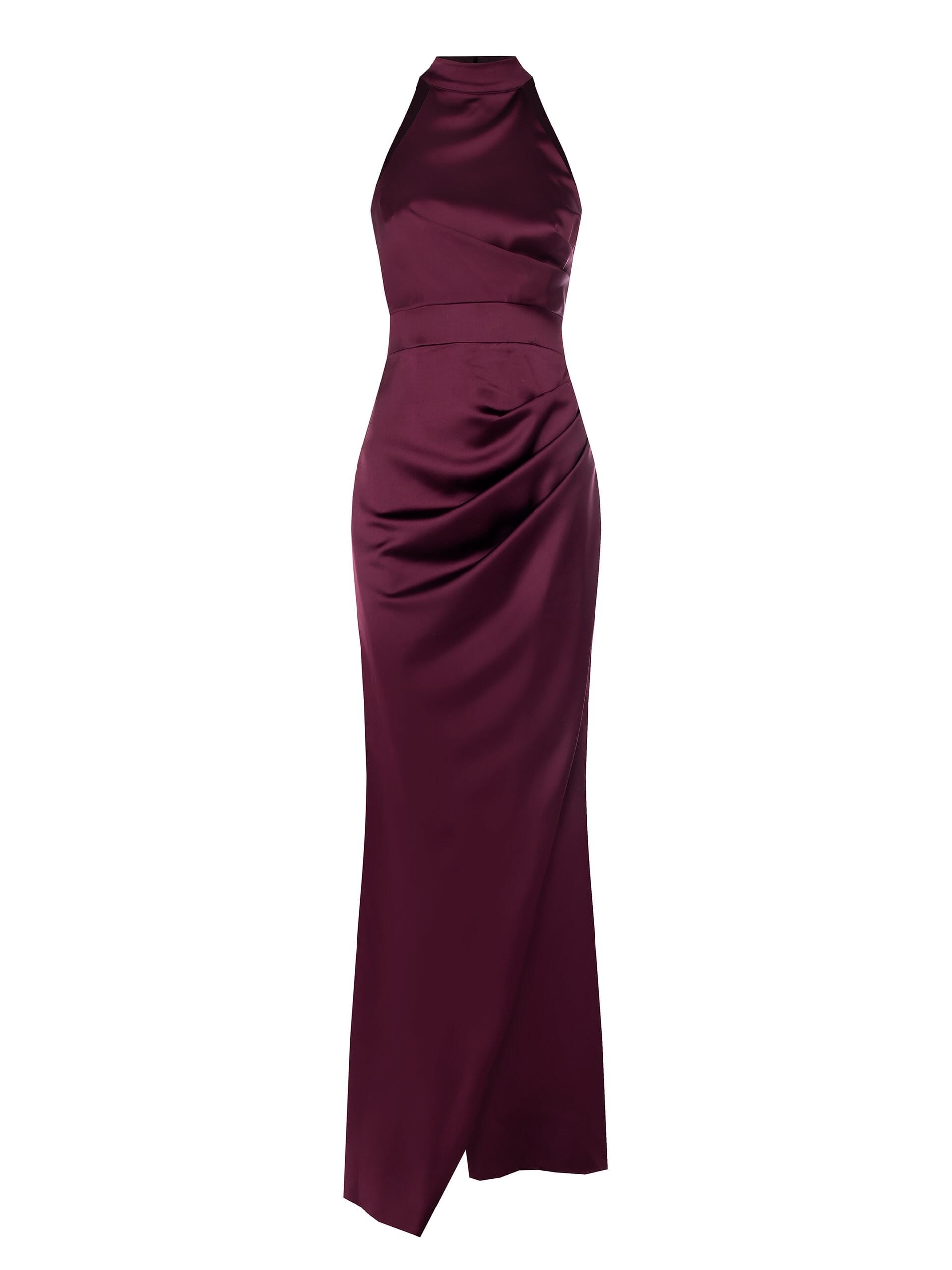 Abito Lungo Scivolato in Raso Arricciato su un Fianco