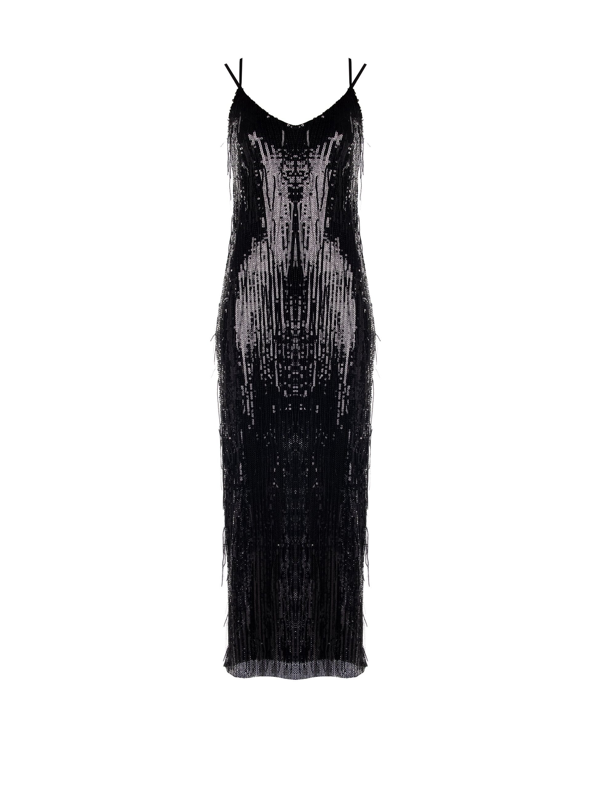 Abito Lungo Sottoveste Ricoperto di Paillettes a Frange