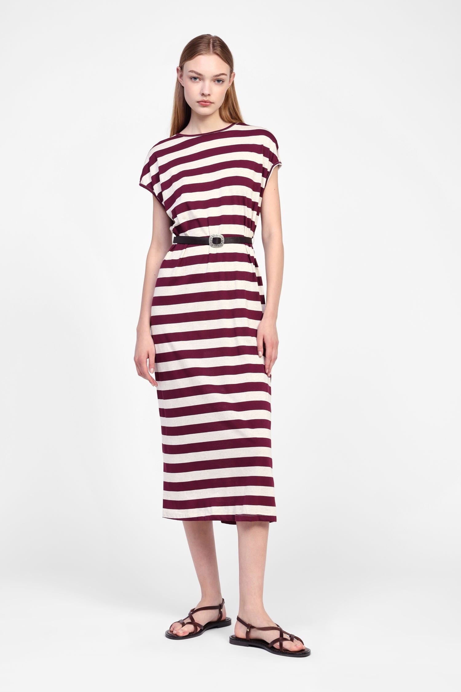 Abito midi a righe con cintura