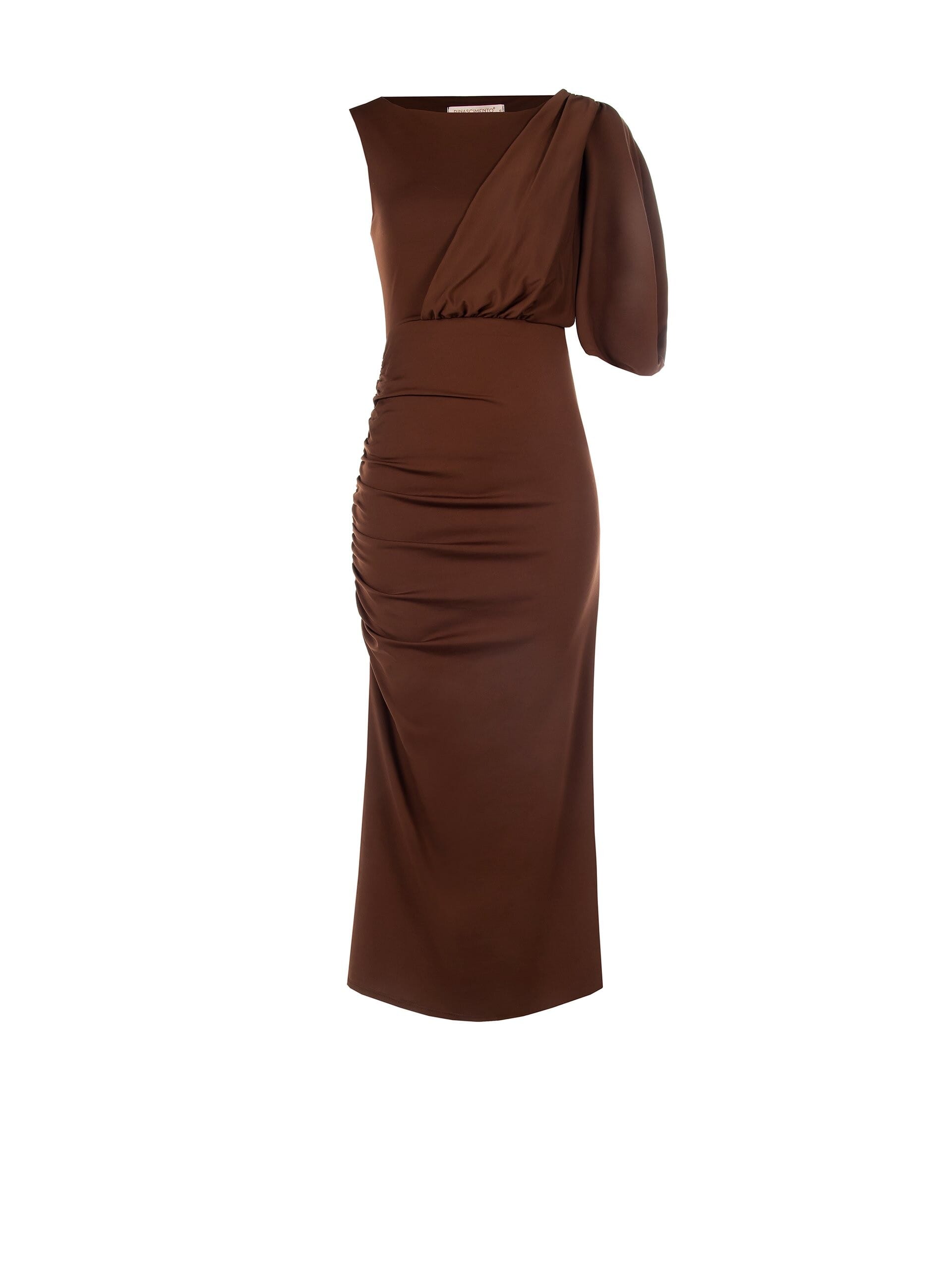 Abito Midi Aderente In Punto Milano Leggero Arricciato Su Un Lato E Con Cut-Out Alla Manica Rinascimento