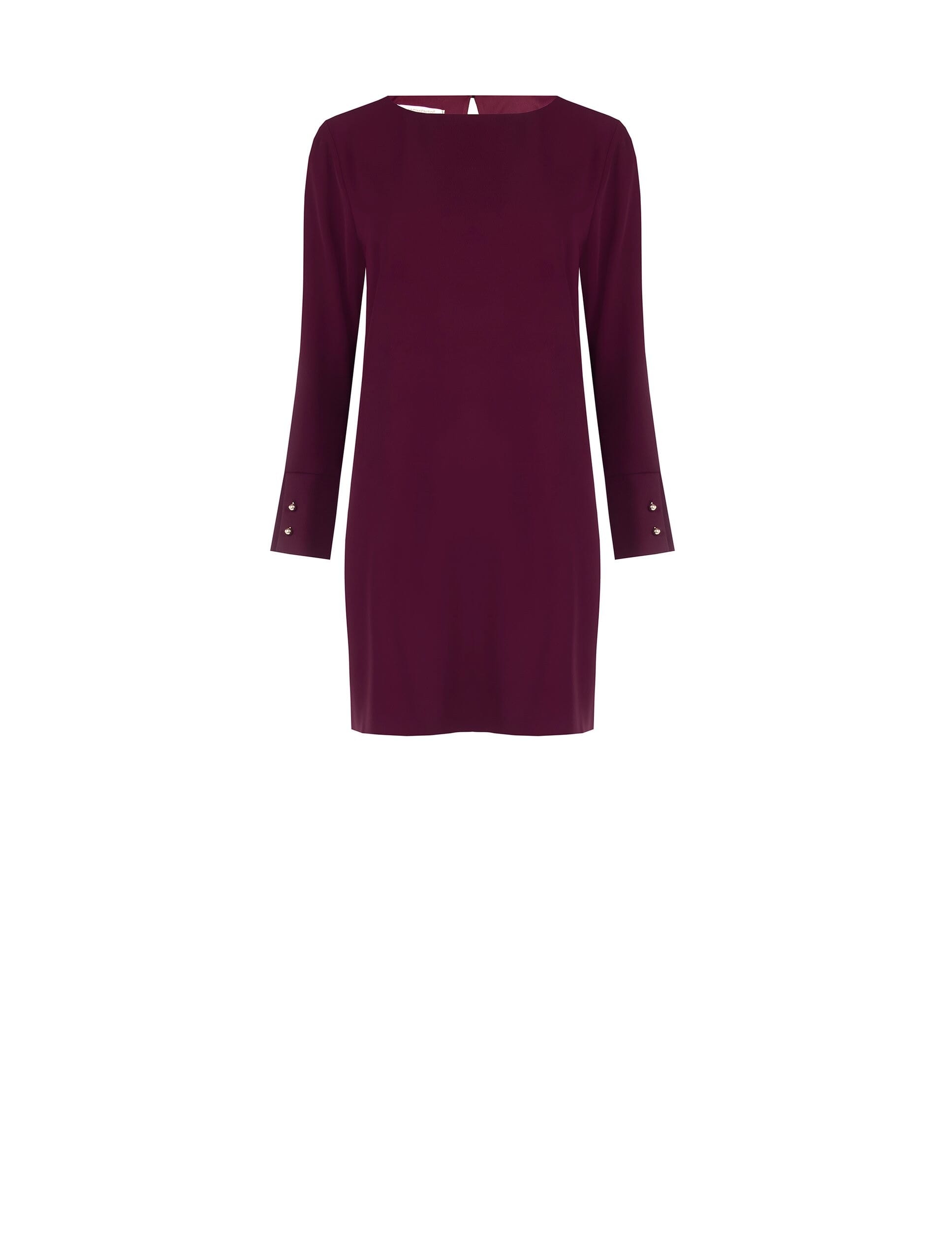 Rinascimento firma una mini dalla linea dritta che sfiora la silhouette senza stringere. Tessuto fluido con mano morbida per comfort tutto il giorno. Scollo a barchetta, apertura posteriore a goccia e polsini con bottoni gioiello. Perfetta con blazer per l’ufficio, con stivali per l’aperitivo.