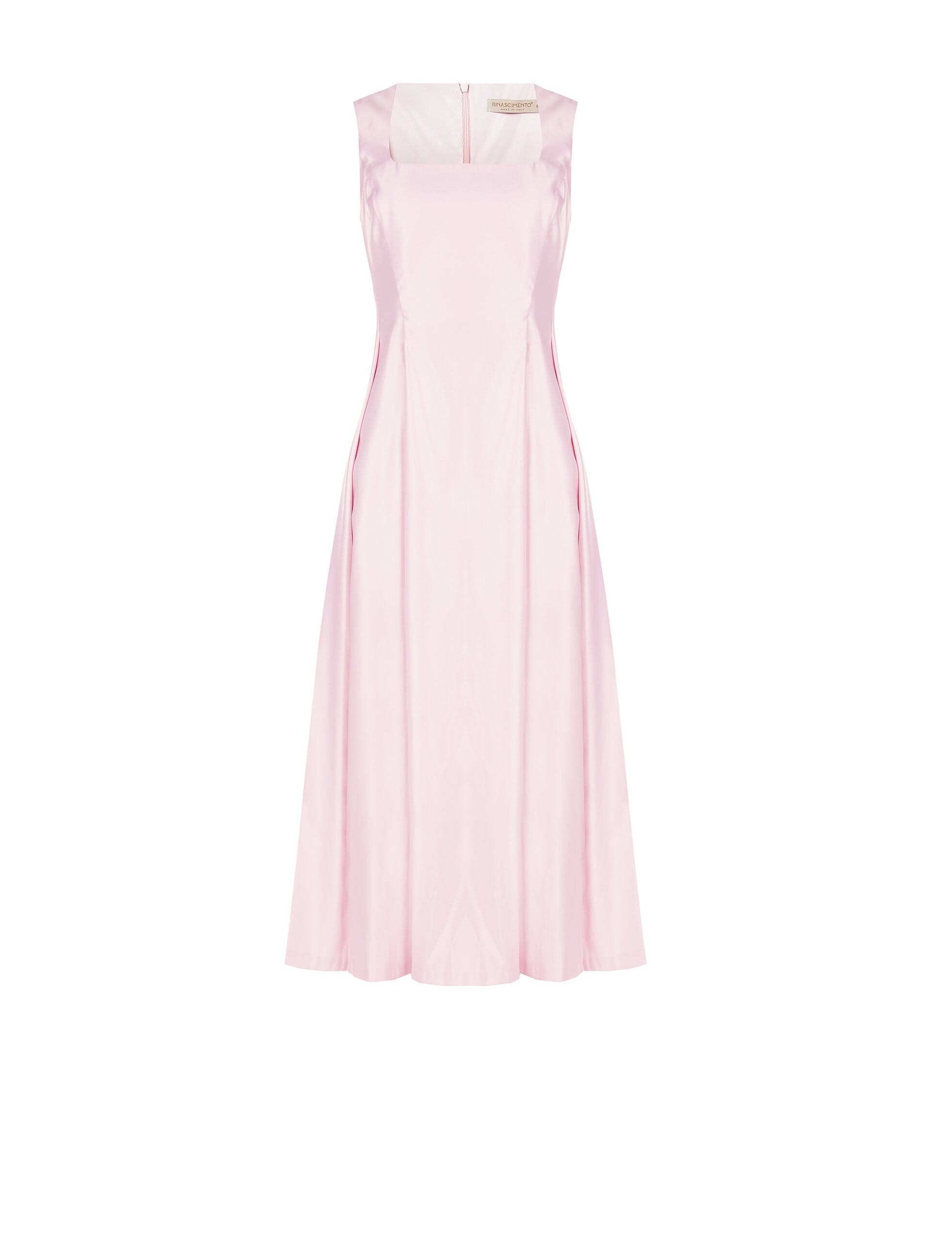 Linea midi svasata che slancia la figura, vita delicatamente aderente e gonna fluida in raso luminoso. Lo scollo dritto valorizza il décolleté, mentre la zip posteriore invisibile assicura una vestibilità impeccabile. Perfetto per cerimonie, cocktail ed eventi speciali.