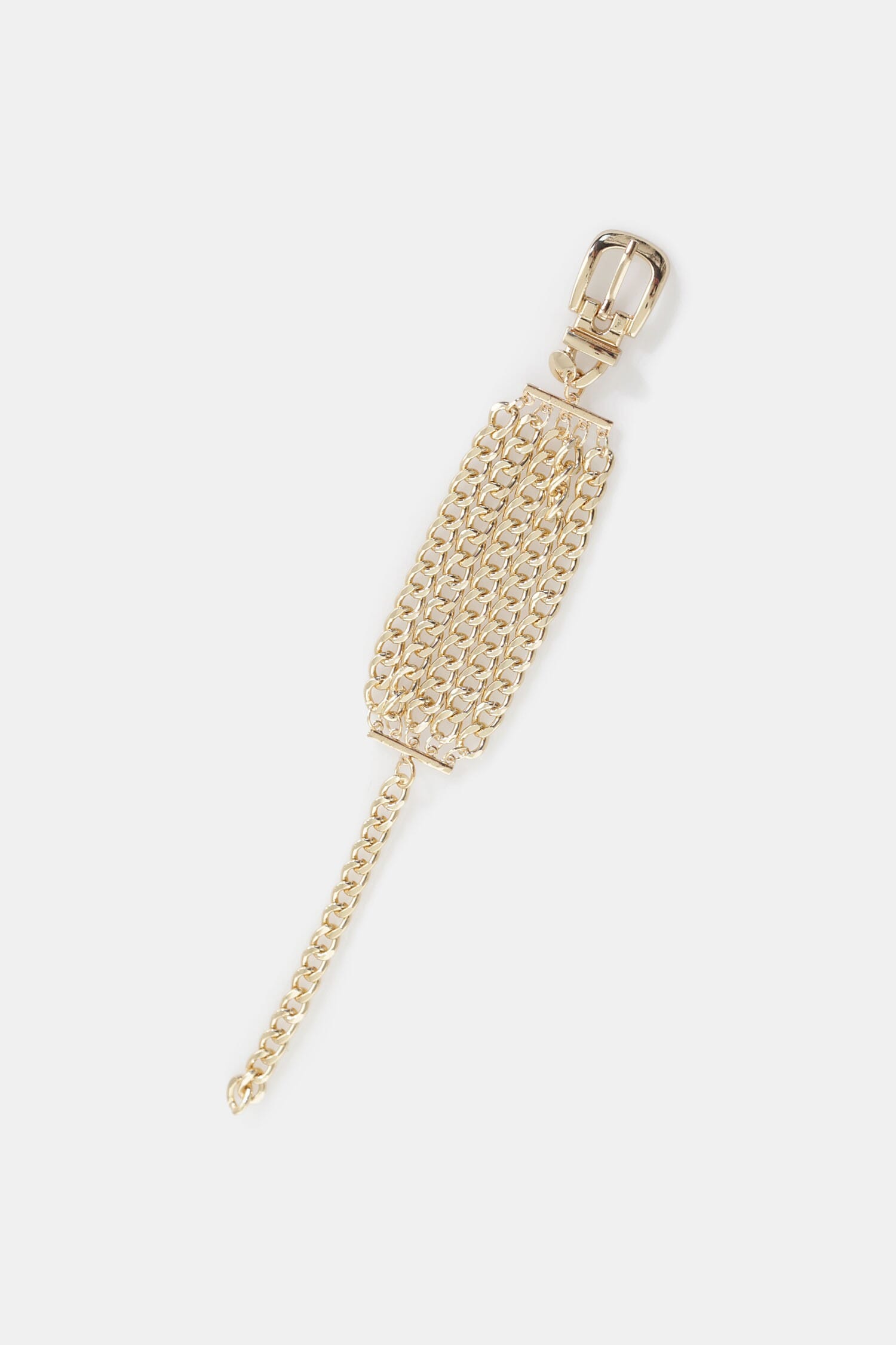 Bracciale in metallo con catene e chiusura a fibbia.