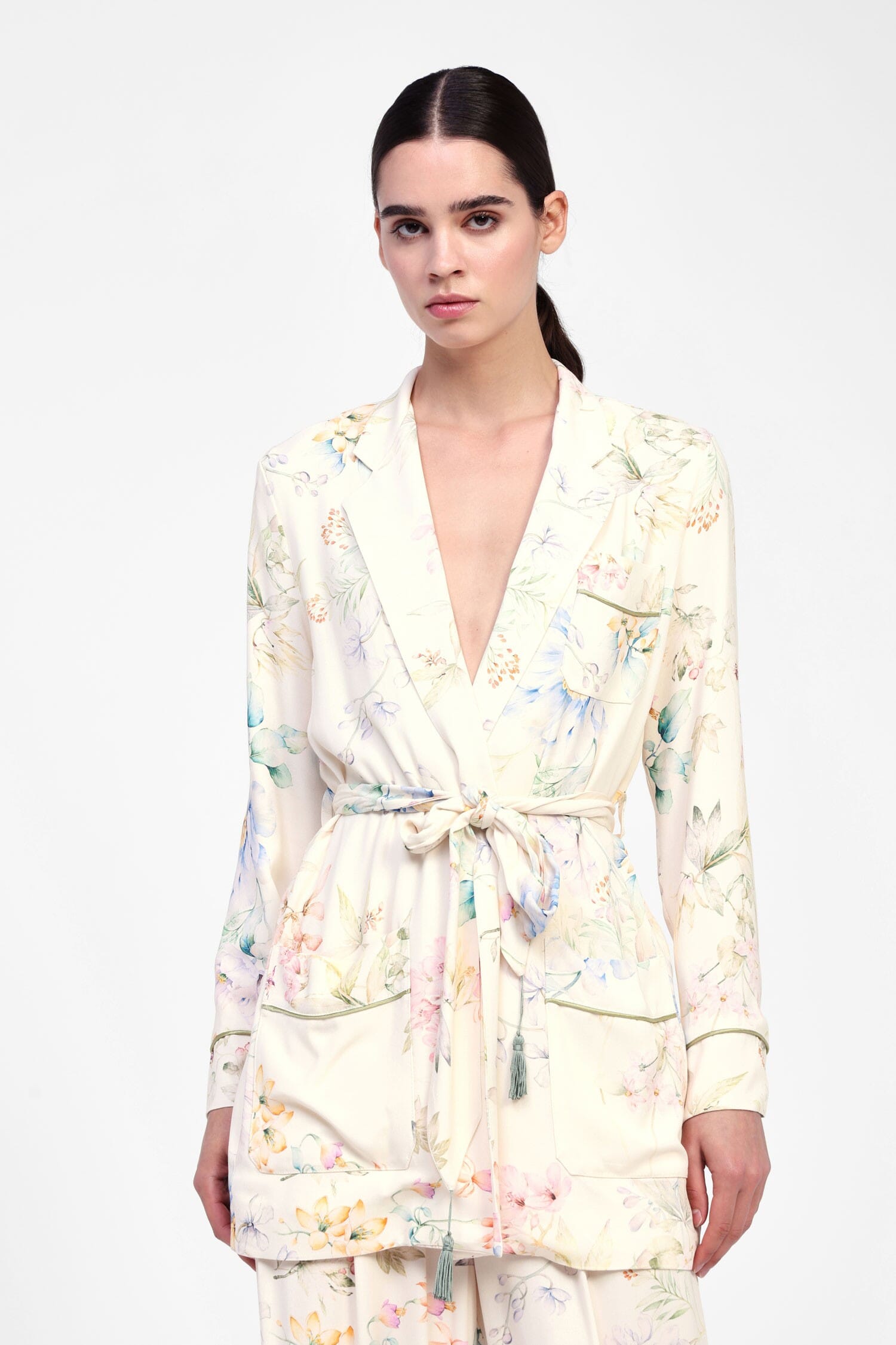 Blazer fiorito con cintura regolabile