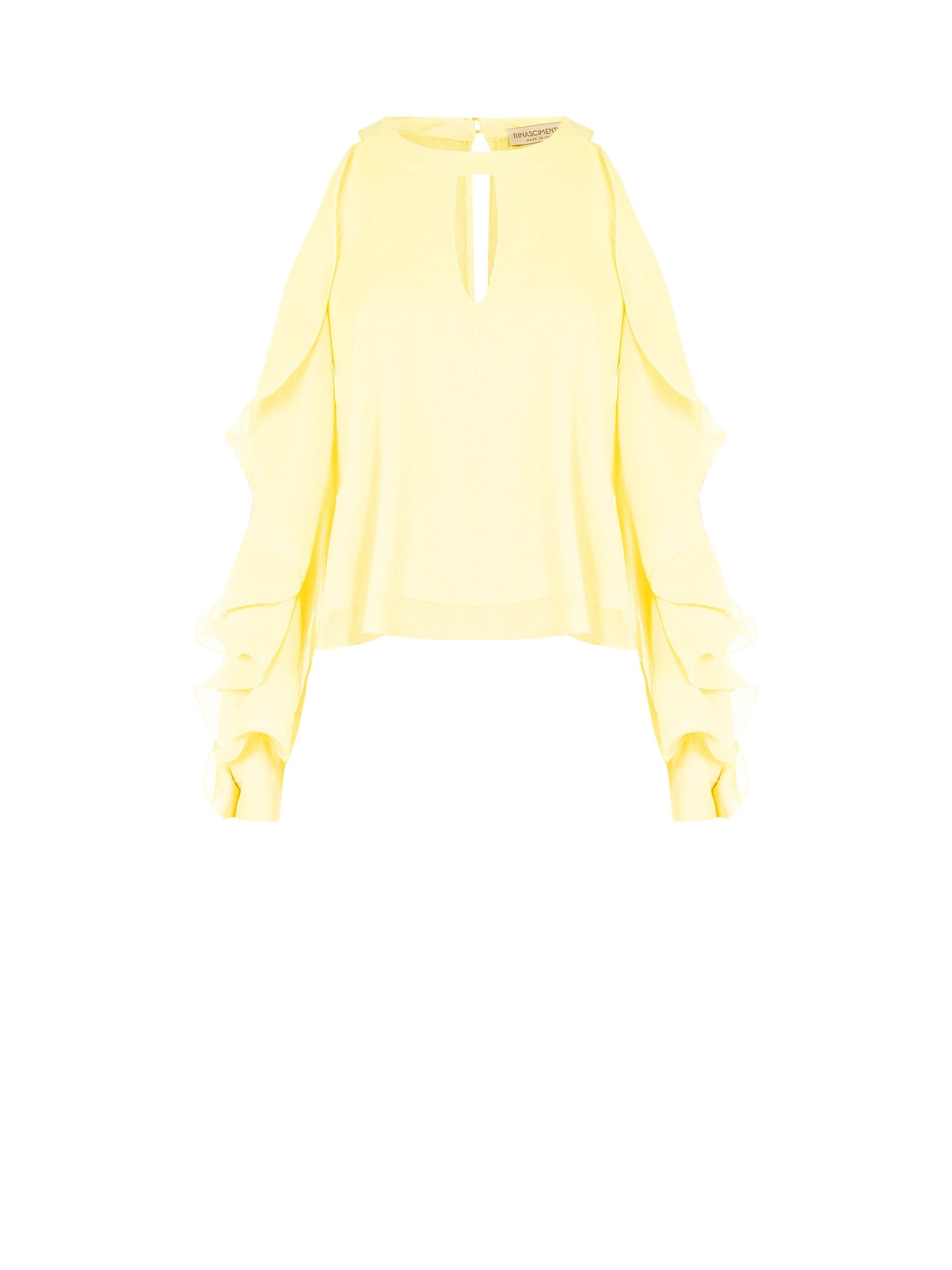 Blusa Ampia in Georgette con Cut-Out e Volant sulle Maniche