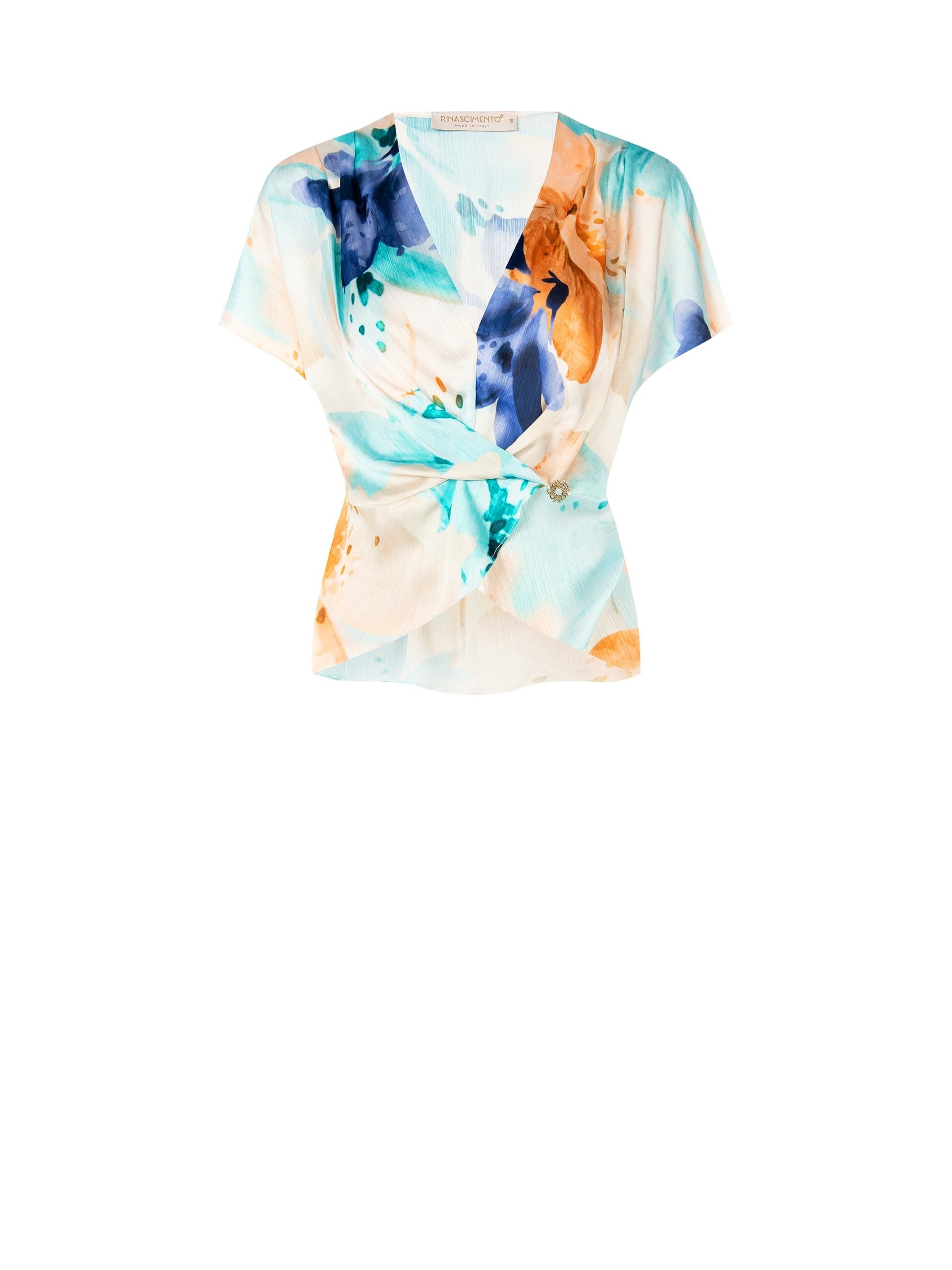 Blusa in Raso a Pieghe Mini con Scollo a V Incrociato