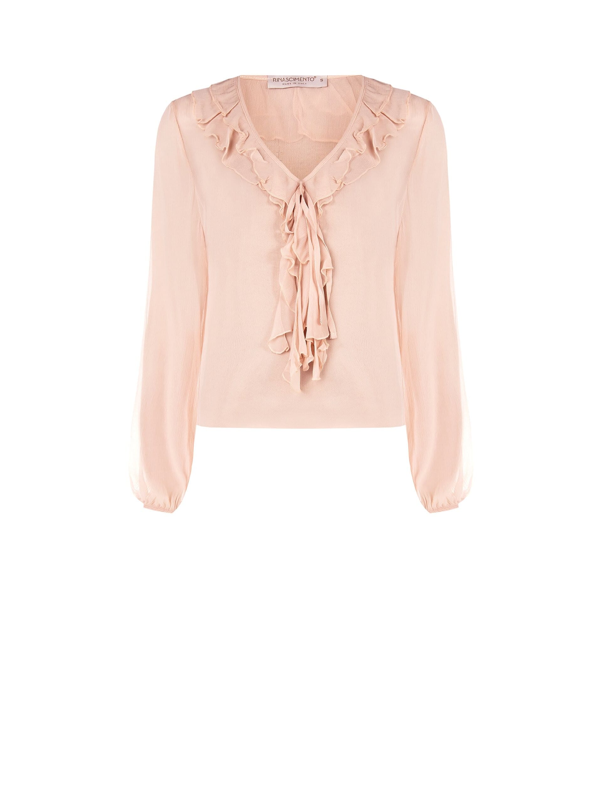 Blusa Semitrasparente in Georgette con Scollo a V e Volant