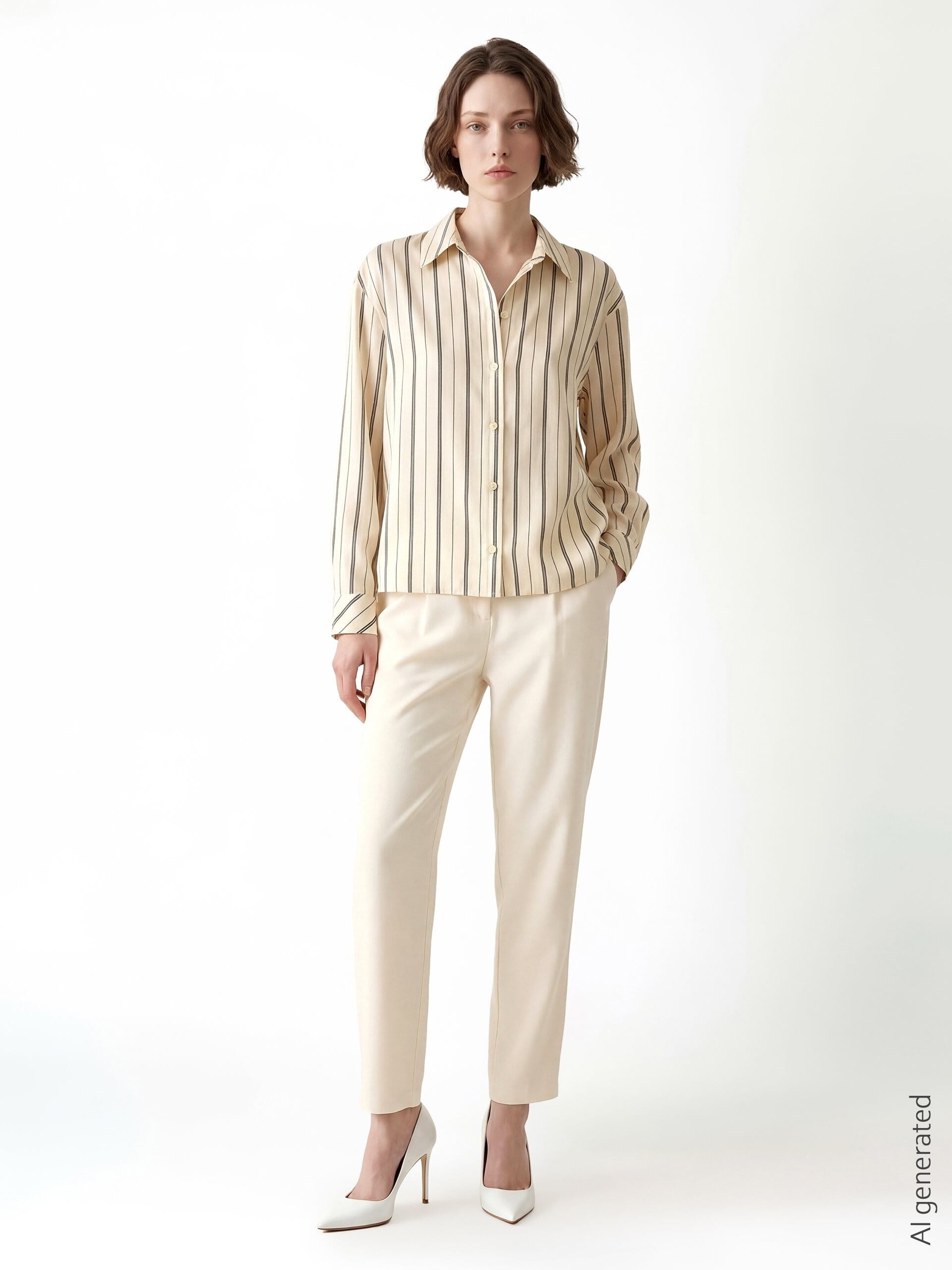 Camicia dal volume morbido in misto cotone leggero, piacevole sulla pelle. Le righe verticali slanciano la figura, mentre il colletto classico e l’abbottonatura frontale la rendono perfetta per l’ufficio e i look everyday, da portare infilata o lasciata fluida.