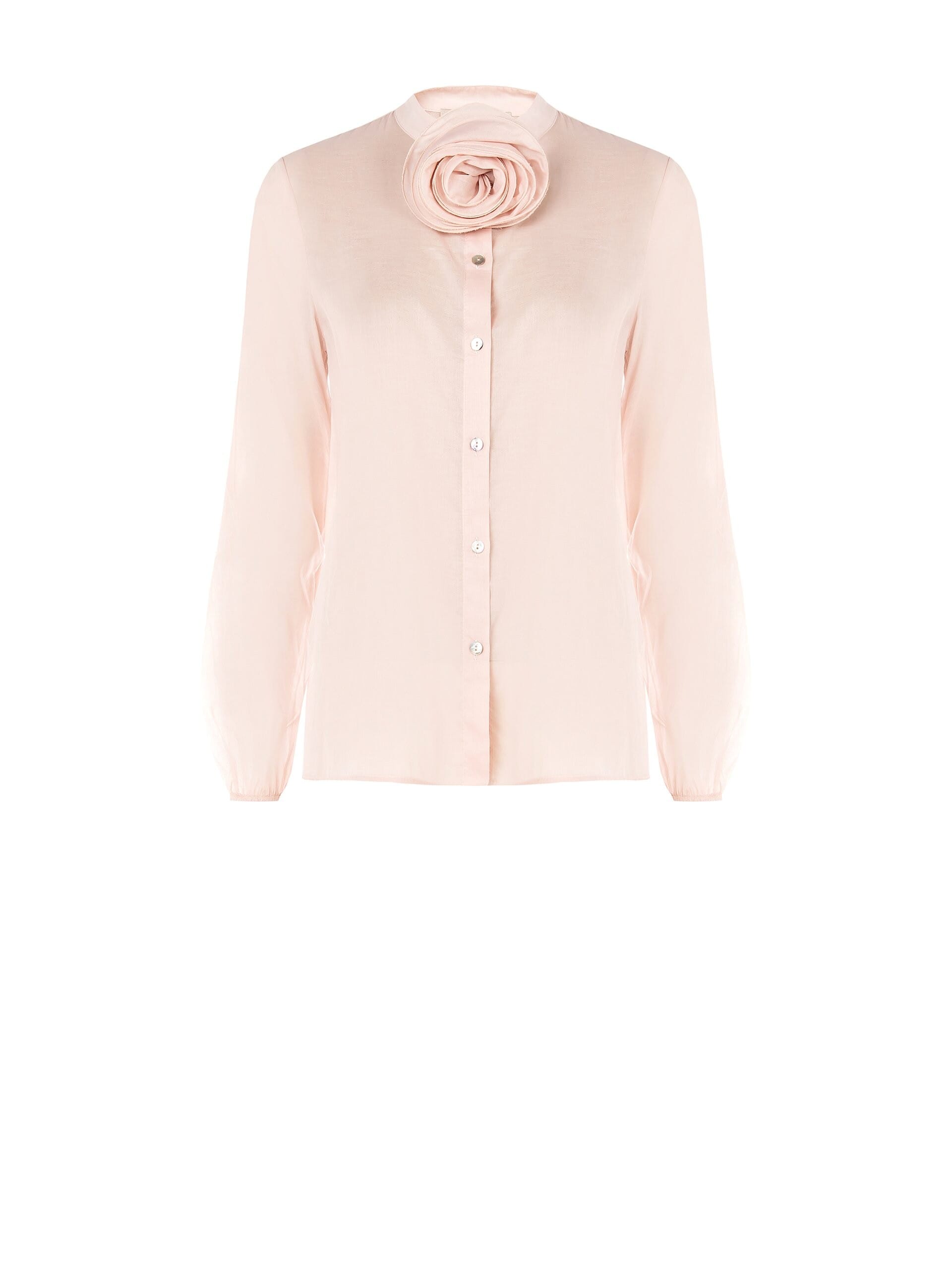 Camicia Ampia In Cotone Semitrasparente Con Spilla Fiore E Bottoni In Madreperla Rinascimento