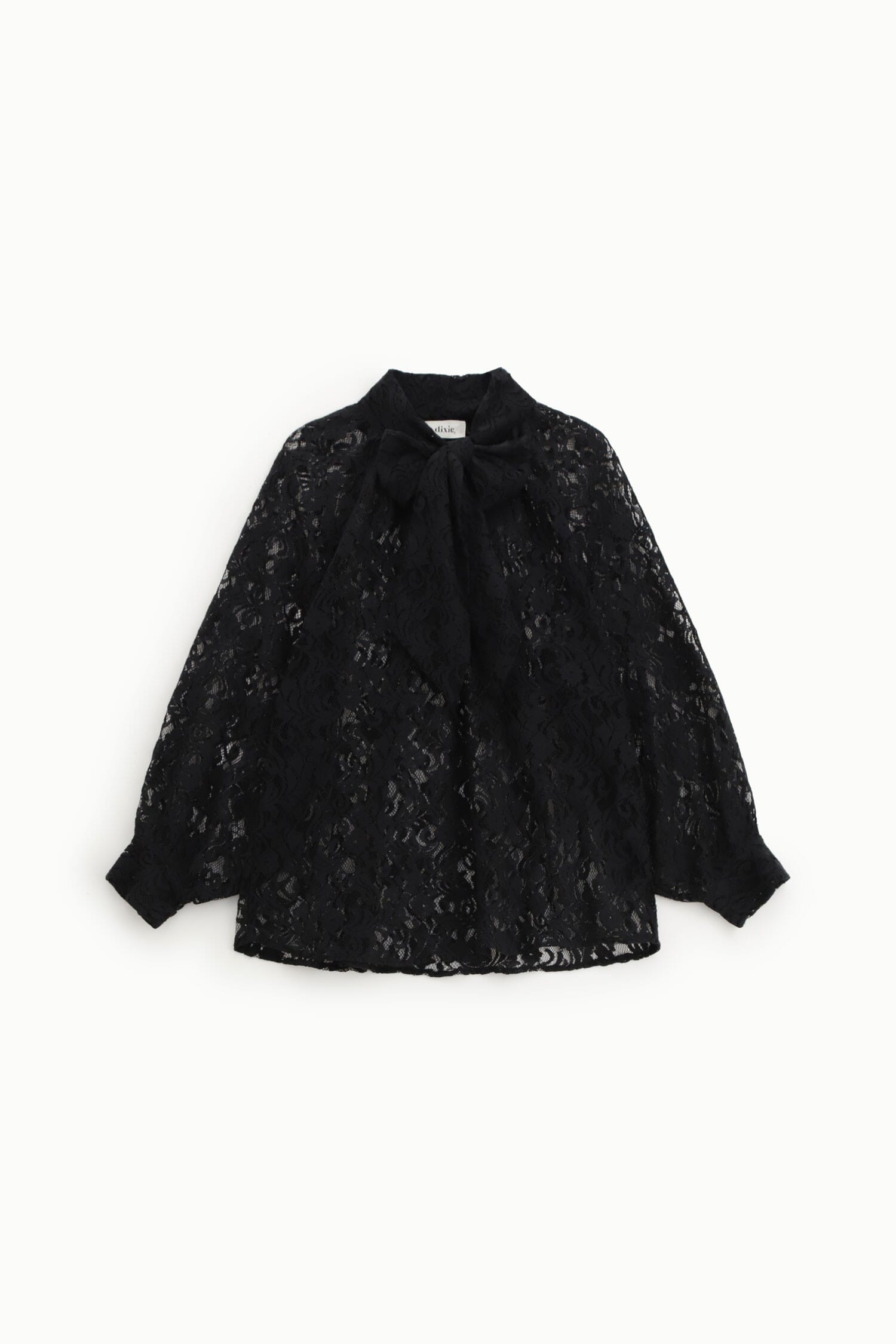 Vivi la giornata con un tocco originale grazie a questa shirt in pizzo dal taglio dritto, arricchita da un maxi fiocco al collo che regala subito carattere. Le maniche lunghe leggermente ampie donano movimento, mentre il design trasparente la rende perfetta per sovrapposizioni ricercate dal mattino alla sera.