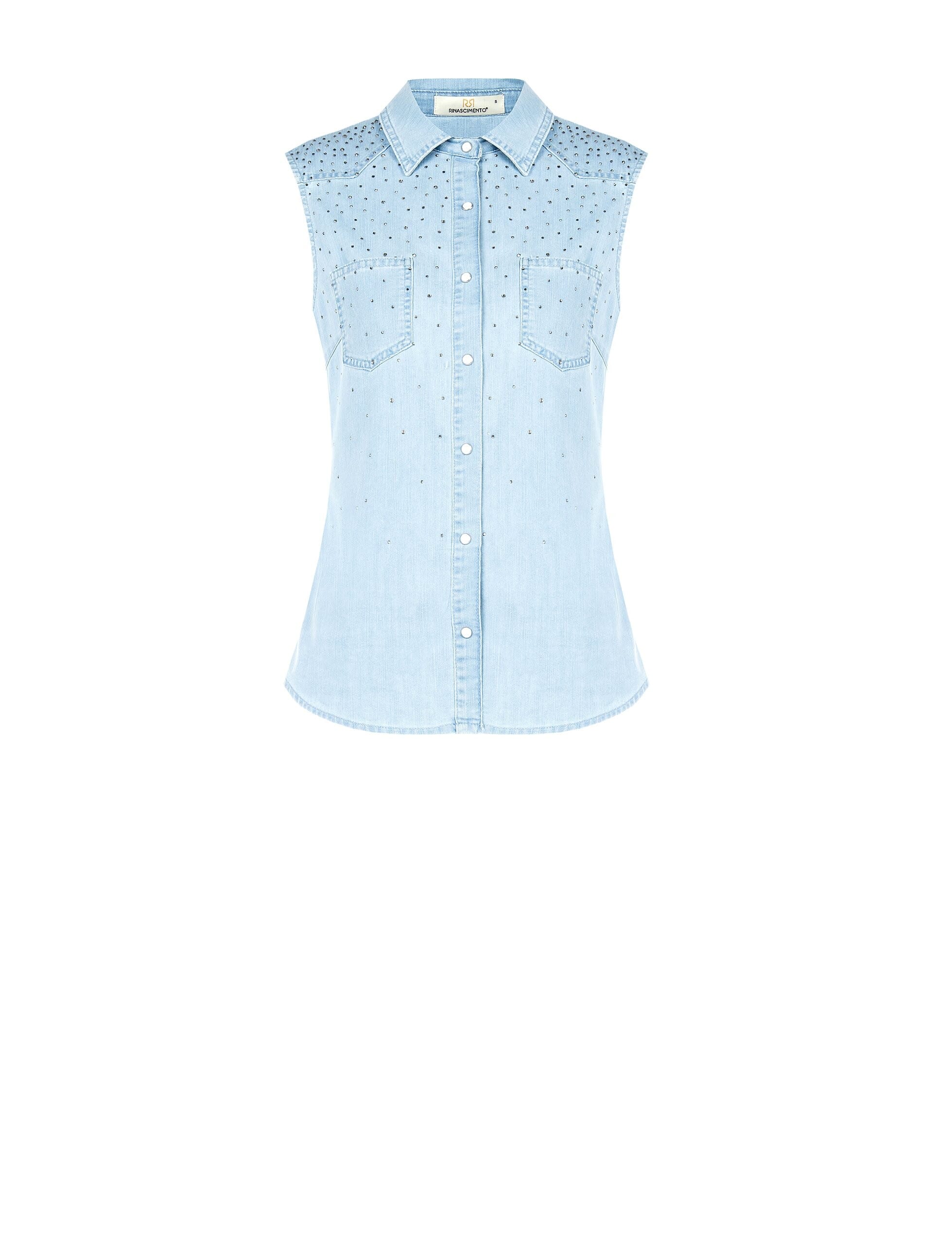 Camicia Sfiancata In Denim Con Strass Rinascimento