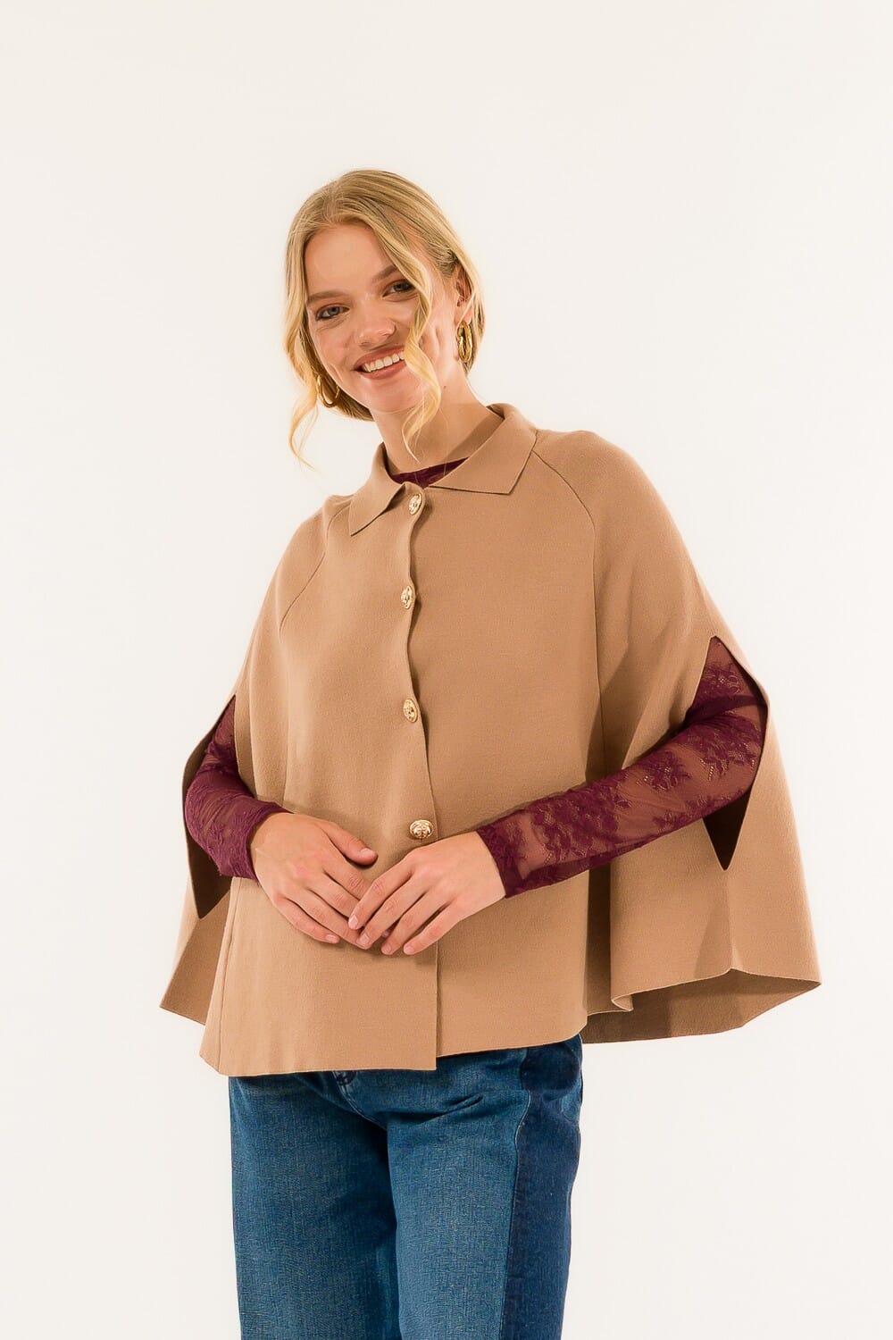 Lasciati avvolgere dall’eleganza discreta di questa cappa dalla linea sofisticata e senza tempo. Un capo versatile, ideale per impreziosire ogni look con un tocco di classe e leggerezza, perfetto per distinguersi con raffinatezza.