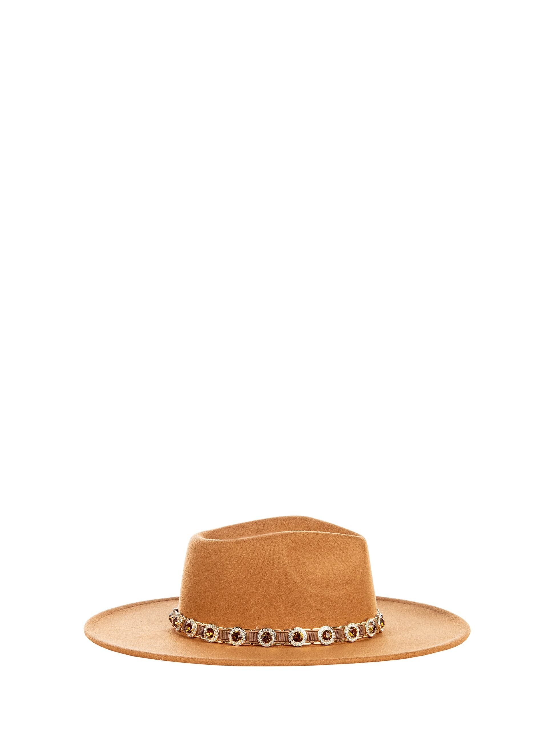 Cappello a tesa ampia dal fit strutturato che slancia i lineamenti. Realizzato in feltro morbido per comfort e tenuta, presenta fascia gioiello con strass e pietre montate su nastro lavorato. Aggiunge carattere al daily look e un tocco sofisticato a outfit da città, brunch o party serale. Rinascimento.