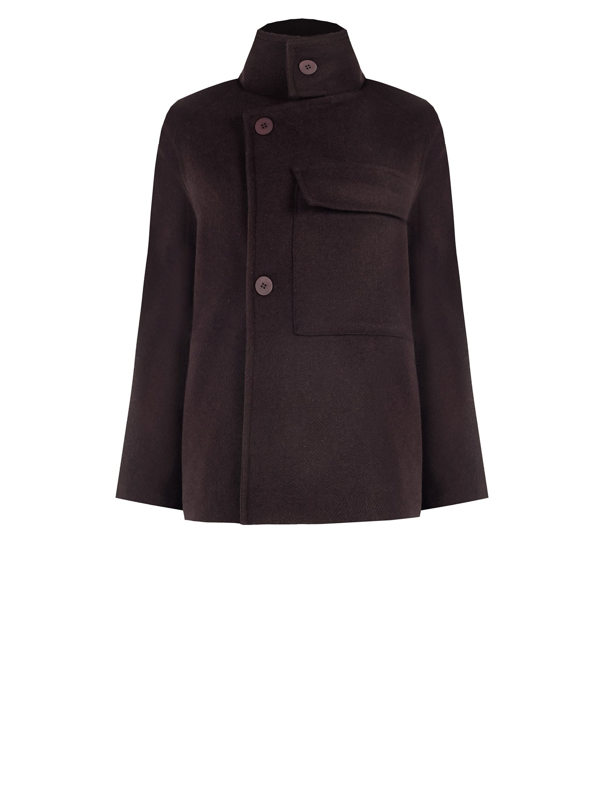 Corto e dal fit dritto, avvolge senza appesantire. Tessuto morbido effetto panno, caldo e confortevole. Collo alto con chiusura asimmetrica e maxi tasca frontale: dettagli che definiscono la silhouette e tengono il necessario a portata di mano. Perfetto per l’ufficio e il weekend in città. Rinascimento.
