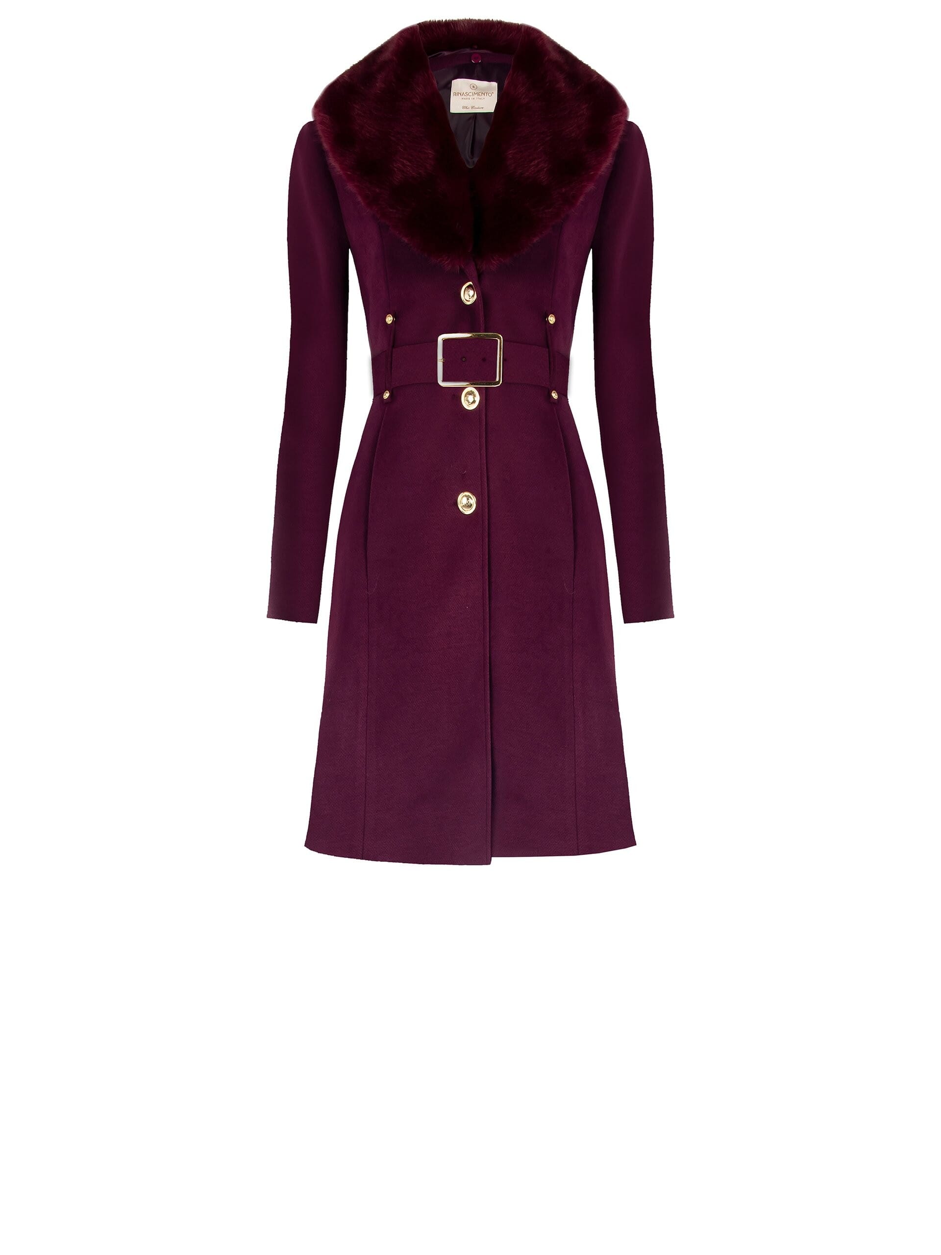 Cappotto dal fit sfiancato che valorizza la silhouette. Morbido velour dall’effetto vellutato, caldo e confortevole. Collo in eco‑pelliccia removibile e cintura in similpelle con fibbia metallica per definire il punto vita. Bottoni gioiello frontali. Perfetto dall’ufficio agli eventi serali, anche su abiti.