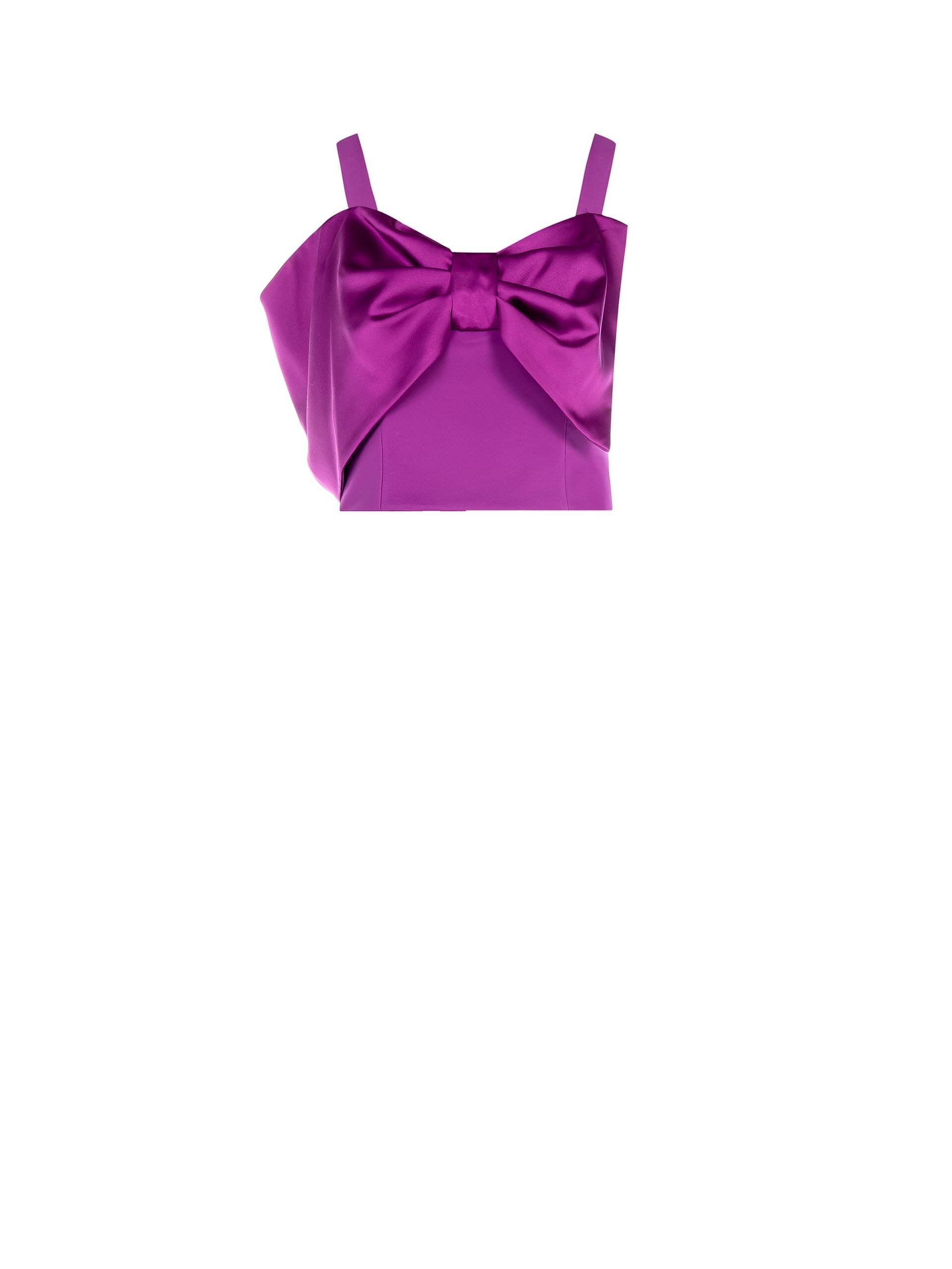 Crop Top in Raso con Maxi Fiocco Asimmetrico