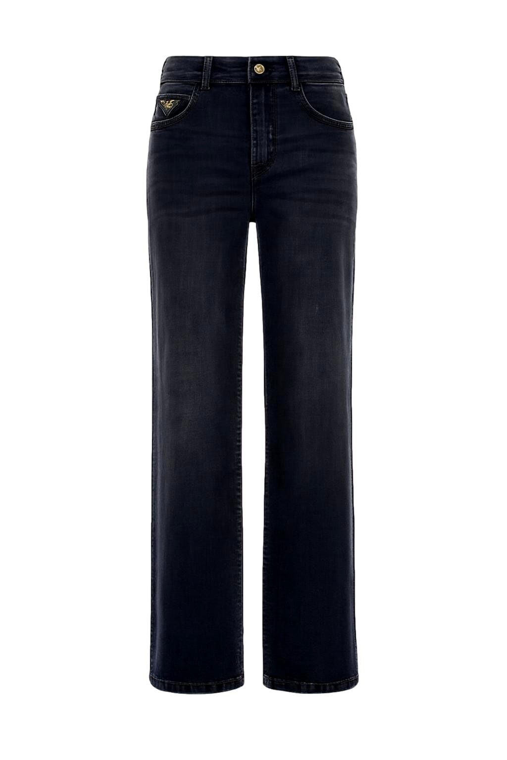 Denim palazzo,tinta unita,vita regolare,applicazione di strass sulle tasche dietro.