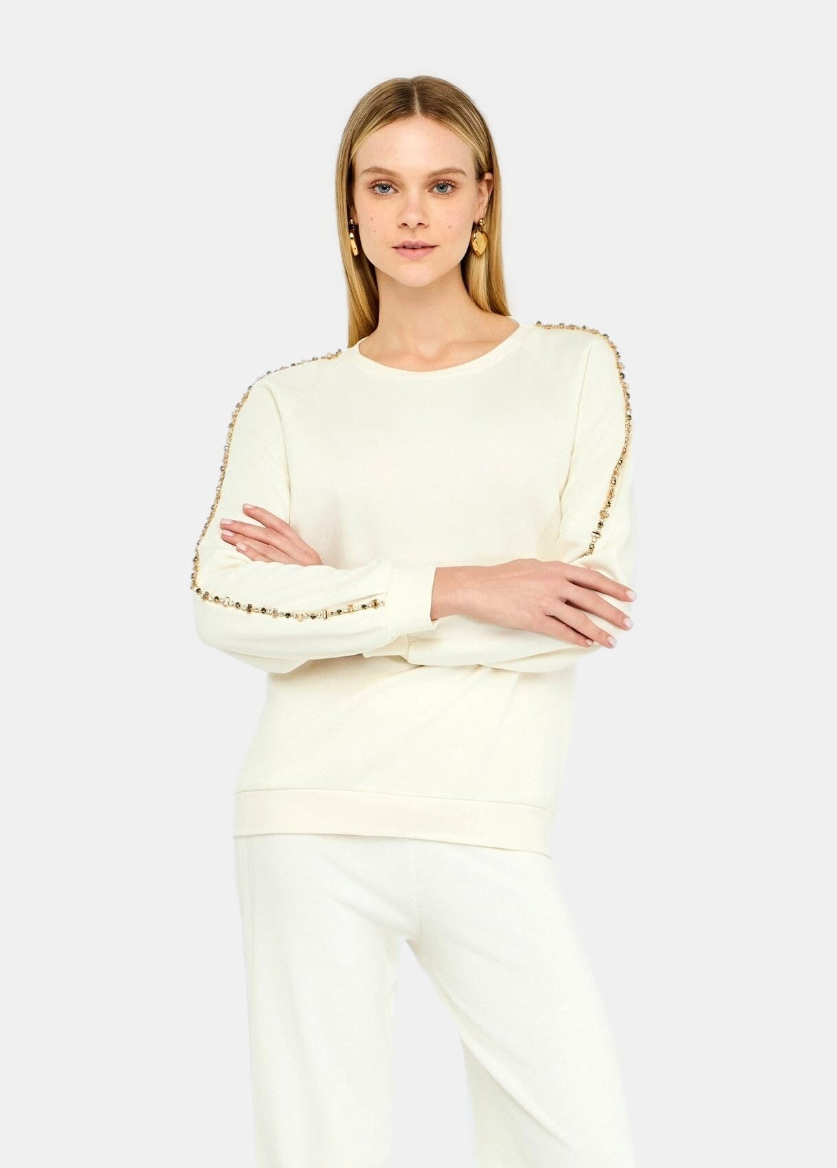 Felpa in misto cotone,strass applicati,girocollo,ecosostenibile.
