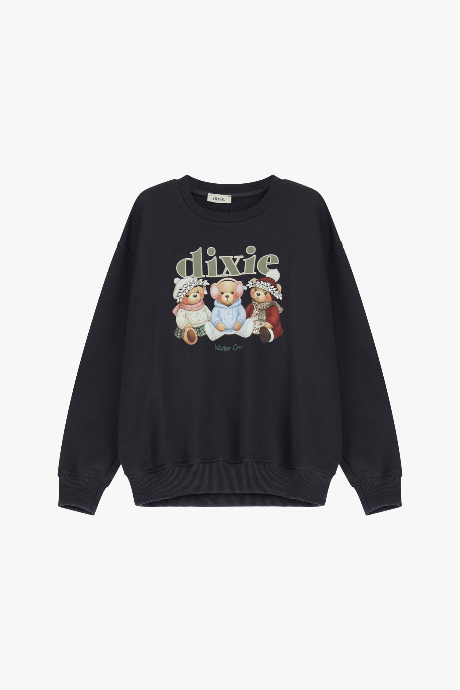 Felpa girocollo dal taglio regolare, rifinita con bordi a costine e un'ampia stampa sul davanti che raffigura tre orsetti vestiti con accessori invernali. Il logo centrale rende il look distintivo, perfetto per dare un tocco originale anche agli outfit più semplici. Facile da abbinare e ideale per il tempo libero.