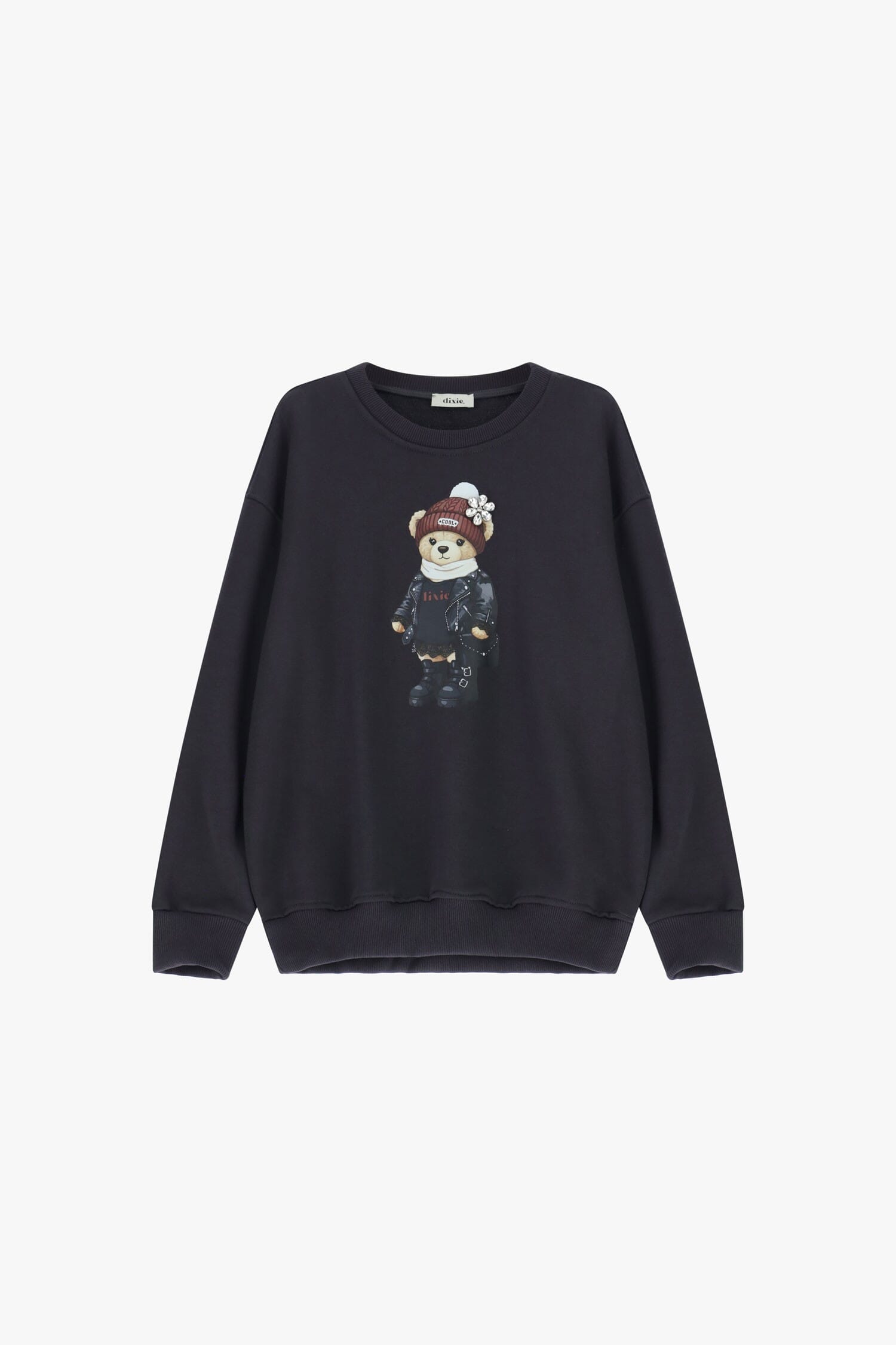 Questa felpa girocollo aggiunge un tocco giocoso alle tue giornate grazie alla stampa orsetto con dettagli vivaci. Le maniche lunghe e la vestibilità comoda la rendono perfetta per rilassarsi o per le tue passeggiate in città. Lavorazione attenta nei bordi a costine che donano comfort e praticità ogni giorno.