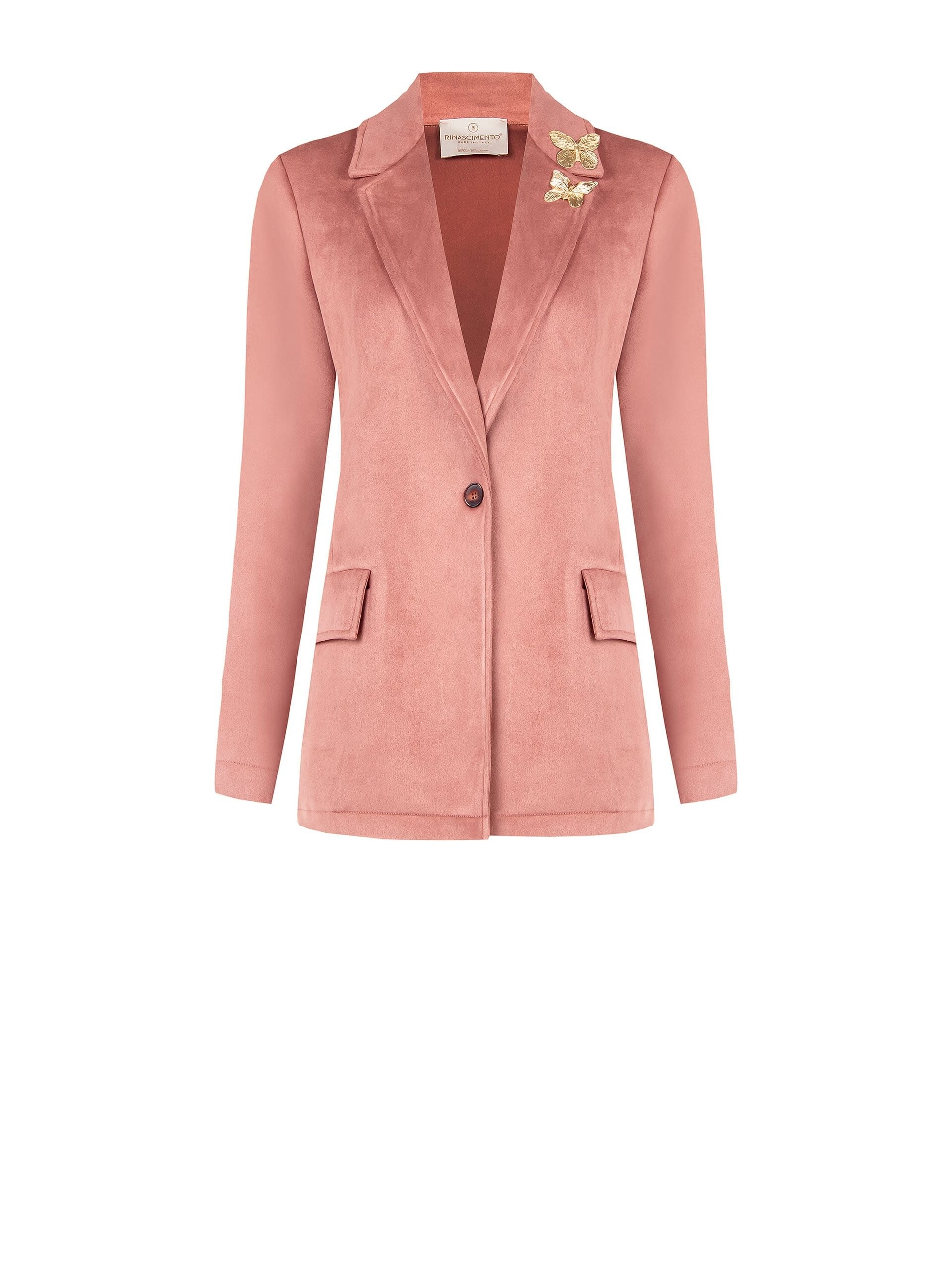 Giacca Blazer Sfiancata in Simil Dainetto con Spilla Farfalla