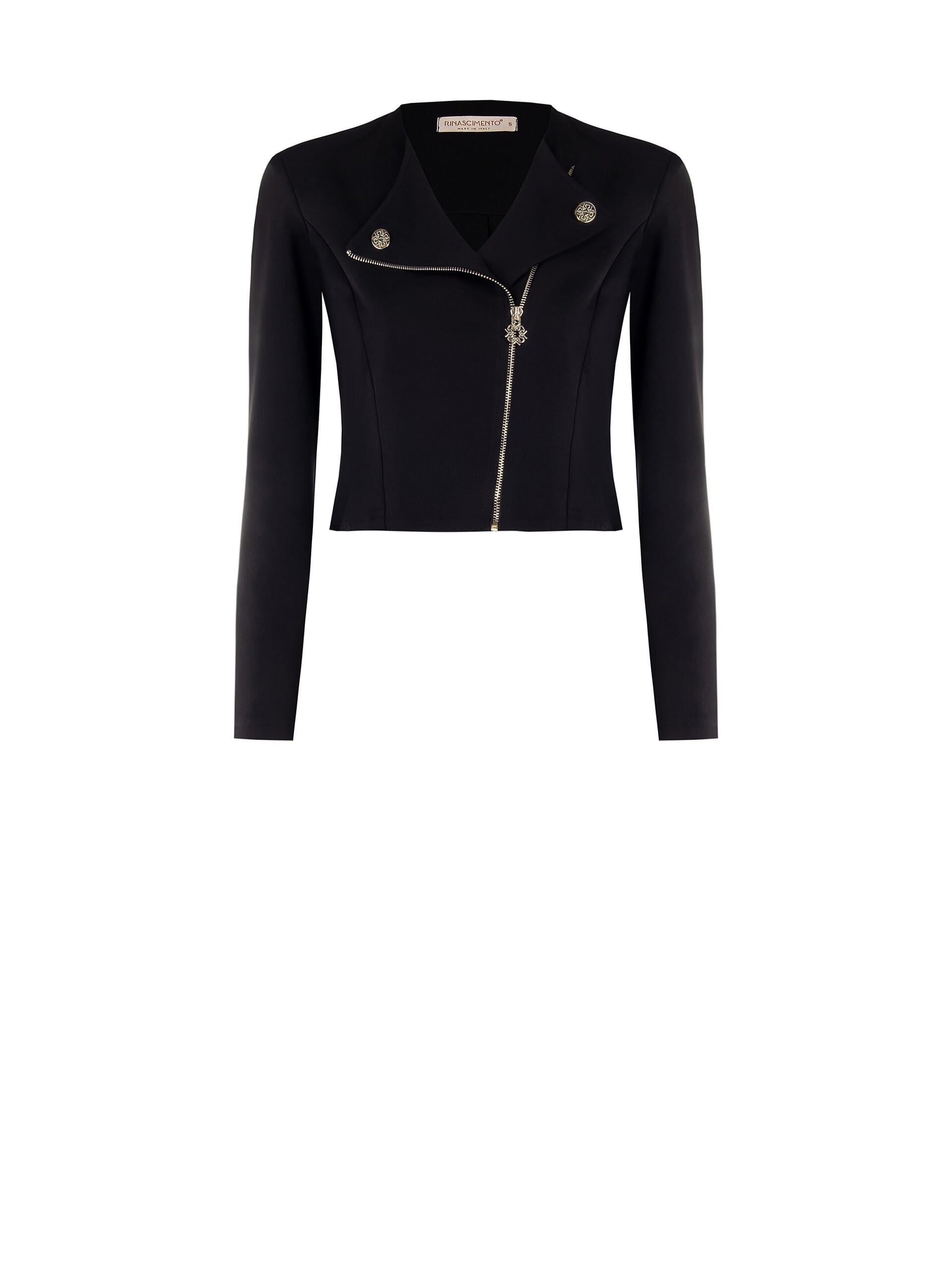 Giacca Stile Chiodo in Tessuto Bi-Stretch con Spalline