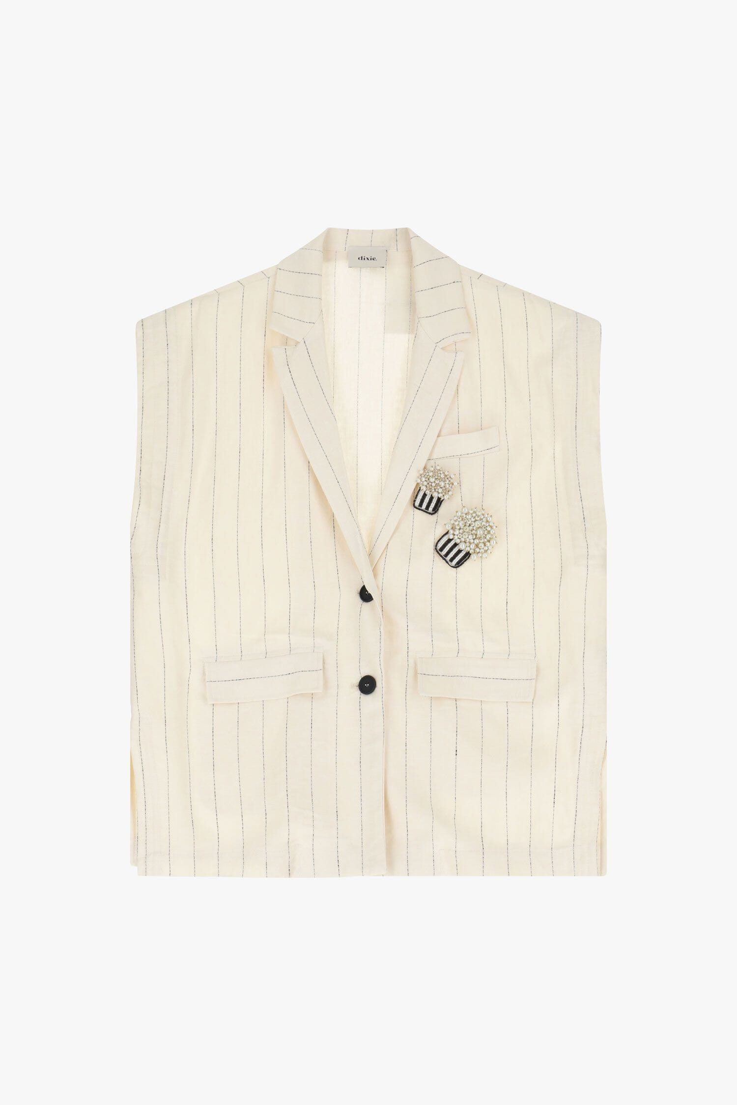 Gilet a righe e bottoni con spille