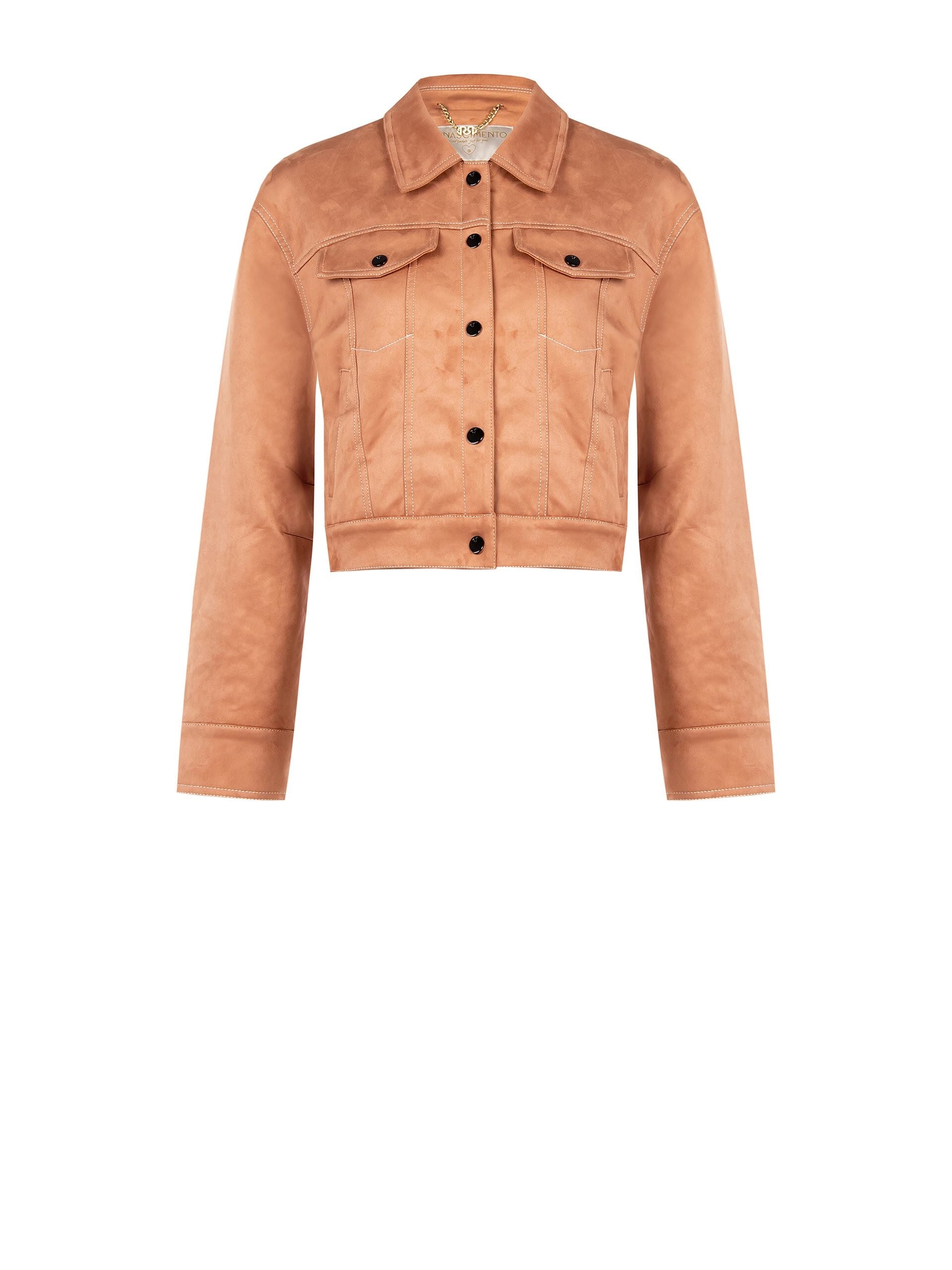 Capospalla corto dalla linea dritta e femminile, in tessuto morbido effetto suede che avvolge con leggerezza. Impunture a vista e taschini con pattina e bottoni a contrasto definiscono la silhouette. Perfetto su abiti e denim, dall’ufficio all’aperitivo.