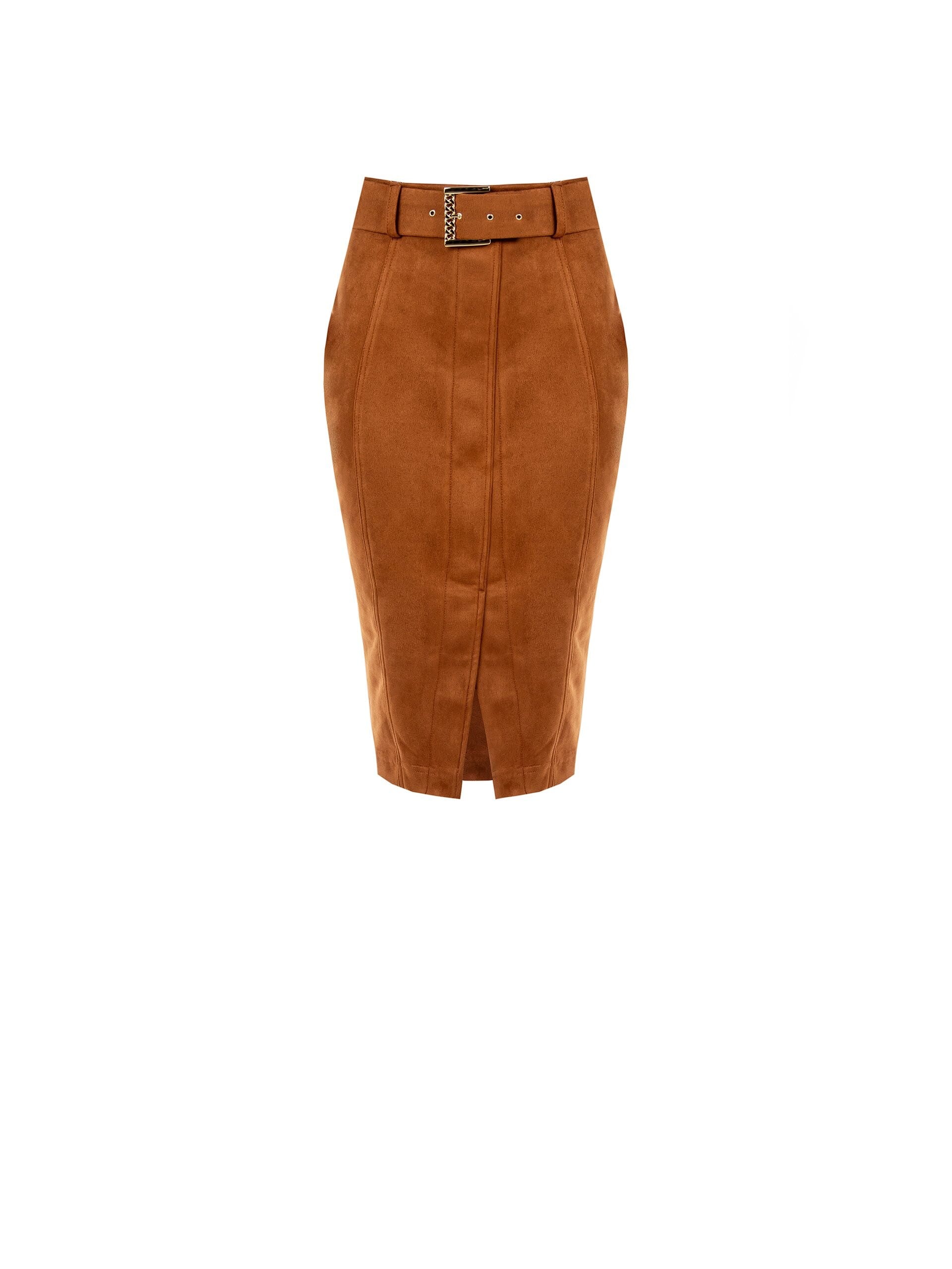 Prezzi ridotti! Gonna A Tubino In Similpelle Scamosciata Con Cintura Rigida Coordinata Rinascimento Espandi