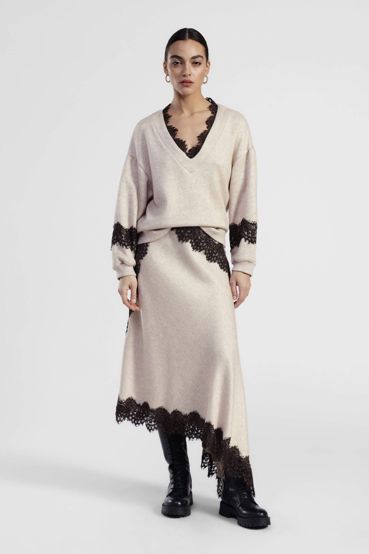 Gonna asimmetrica con bordo in pizzo