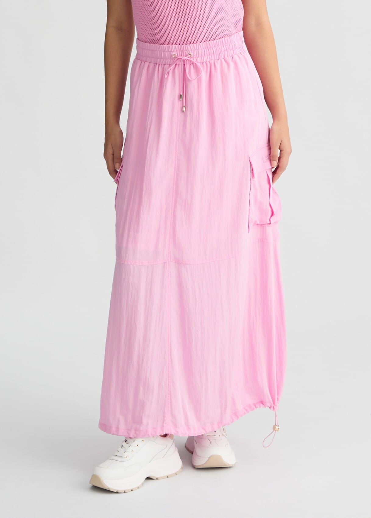 Gonna lunga in misto viscosa,cintone elastico con coulisse in vita,tasche sui lati,logo sur ton ricamato.