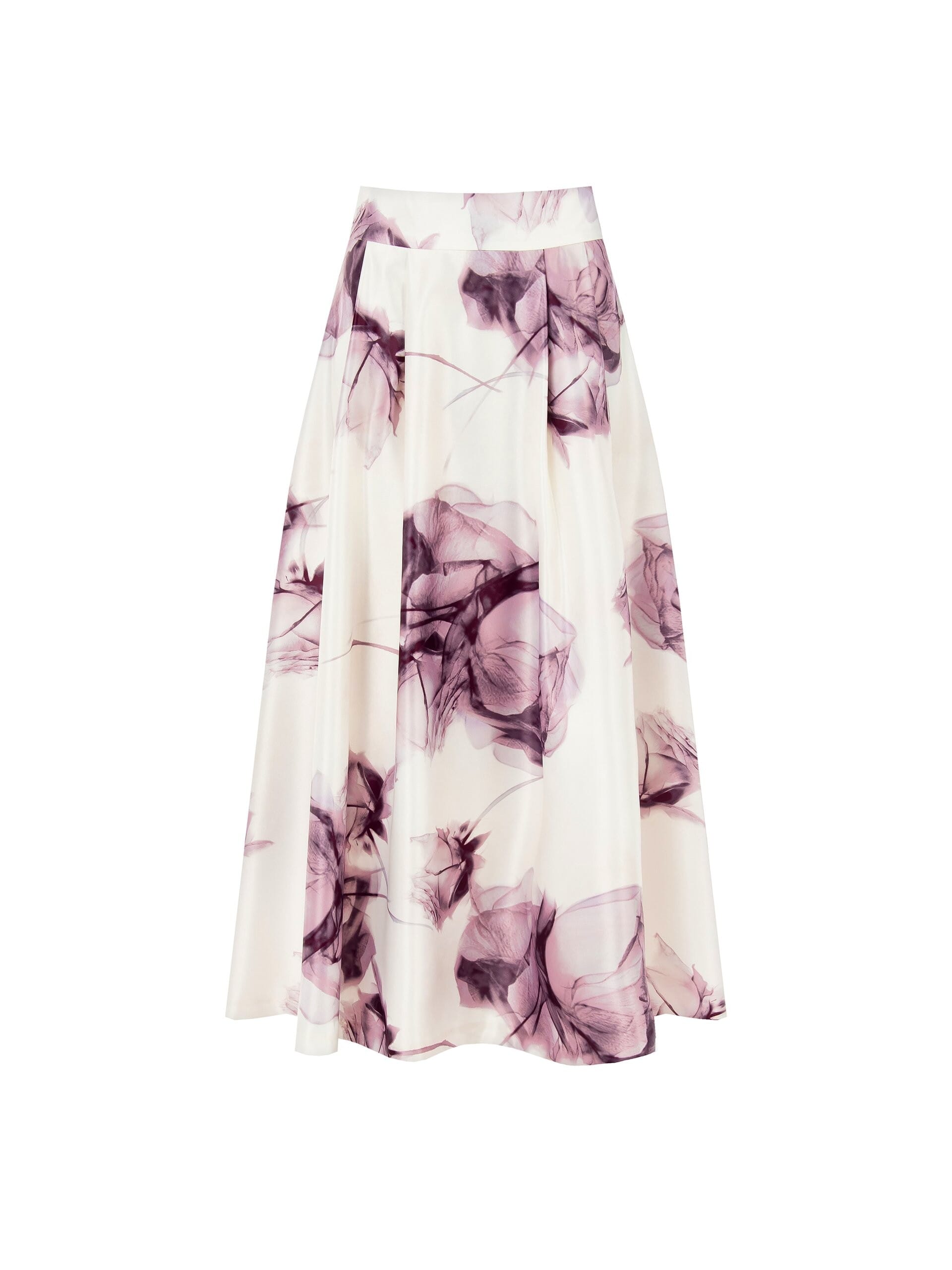 Gonna Lunga a Ruota in Raso Duchesse a Fiori con Tasche