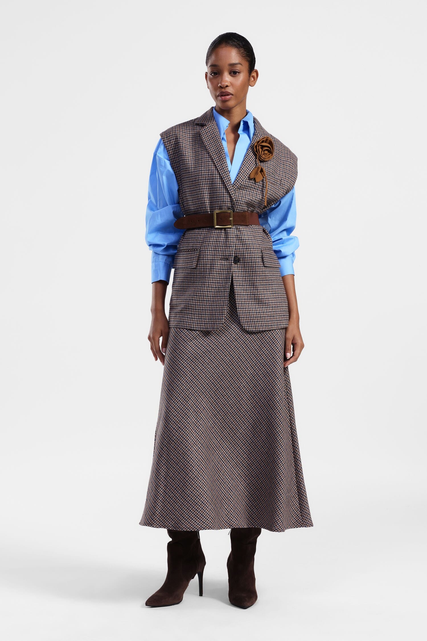 Scopri il fascino senza tempo di questa gonna lunga a stampa, perfetta per un look quotidiano raffinato. La vita alta esalta la silhouette, offrendo un comfort duraturo per tutta la giornata. Immagina di indossarla con il tuo top preferito per un tocco di eleganza semplice e raffinata. Un capo versatile che si adatta facilmente a ogni occasione.