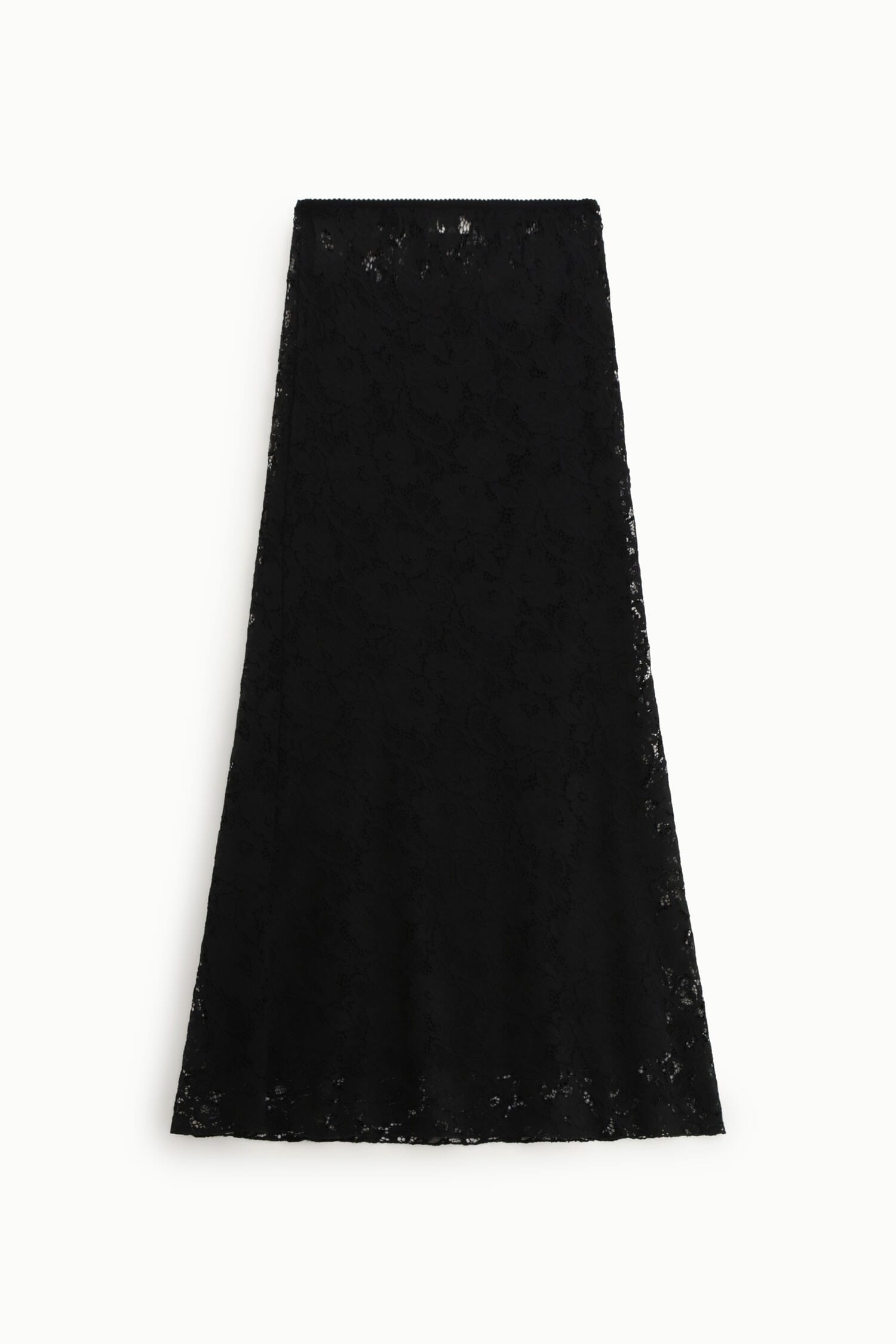 Una gonna in pizzo floreale ricca di romantica femminilità.