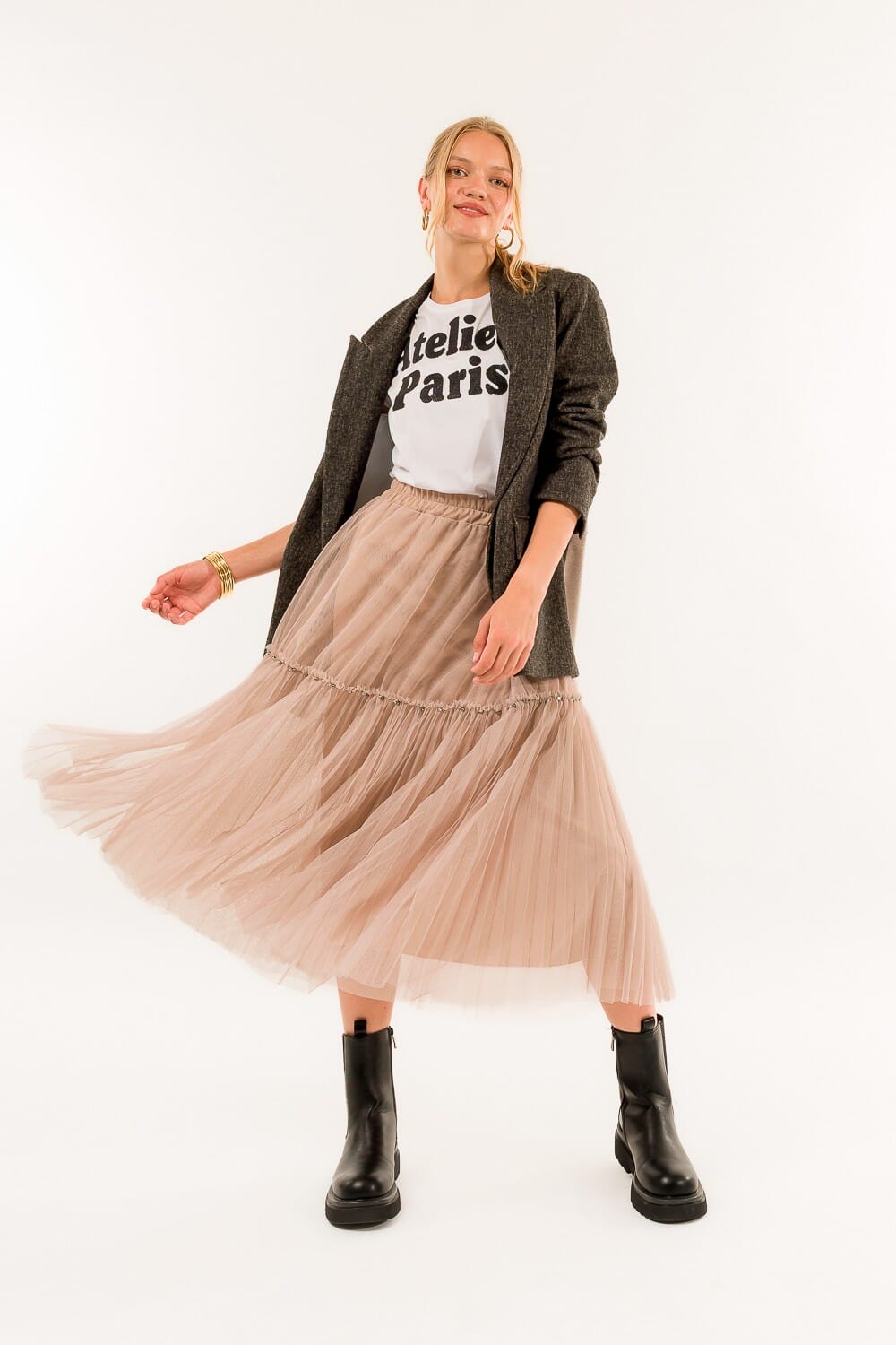 Leggera come una carezza, questa gonna avvolge la silhouette con raffinata leggerezza. Il movimento etereo del tulle esalta la tua femminilità, regalando ad ogni passo un’eleganza romantica e irresistibile. Perfetta per distinguersi, sempre.