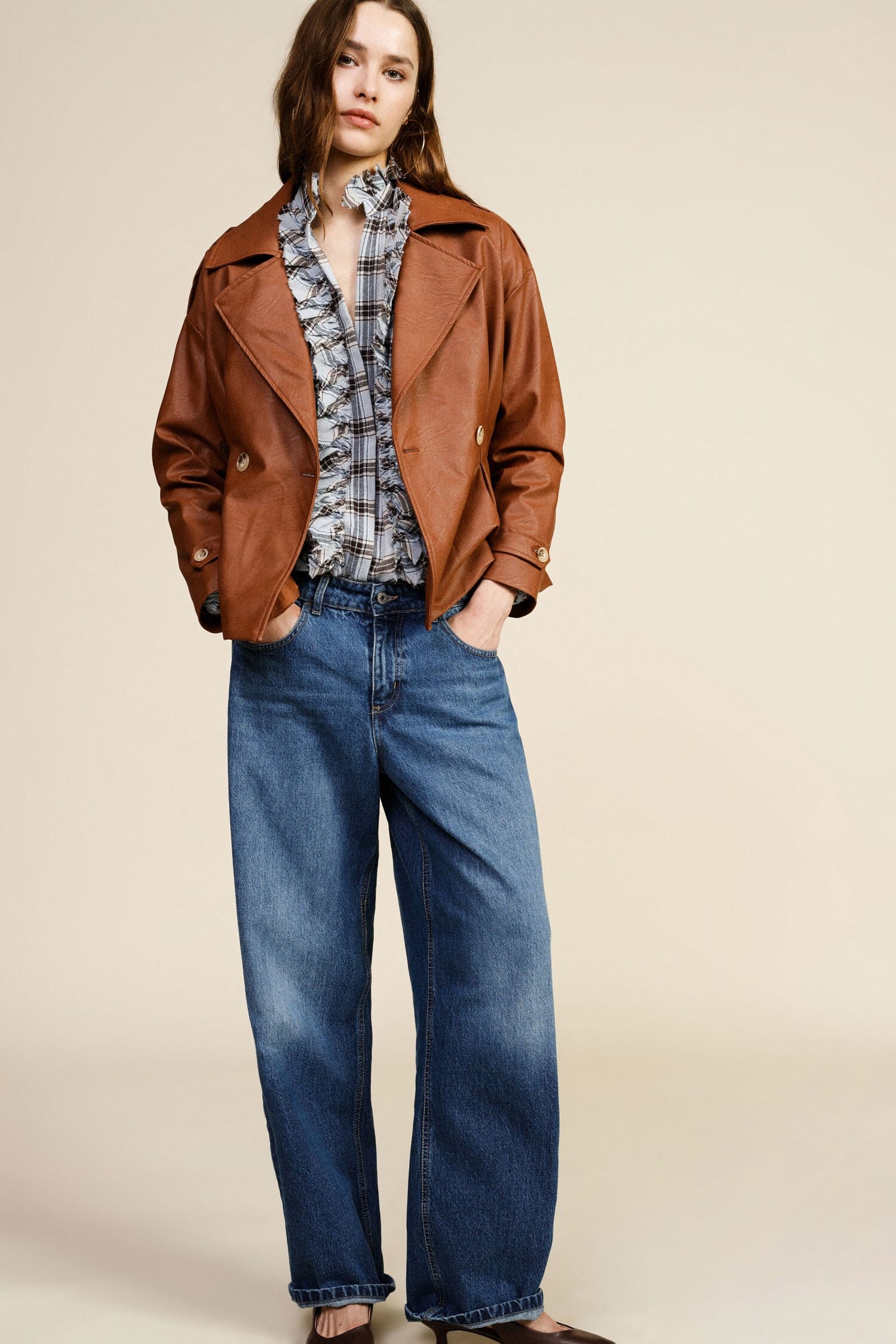 La silhouette ampia e la vita alta di questi jeans danno subito carattere anche al look più semplice. Dotati di comode tasche e chiusura classica, sono l'alleato perfetto per chi vuole sentirsi a proprio agio in ogni momento della giornata. Immagina di abbinarli alle tue camicie preferite per uno stile sempre originale e curato.