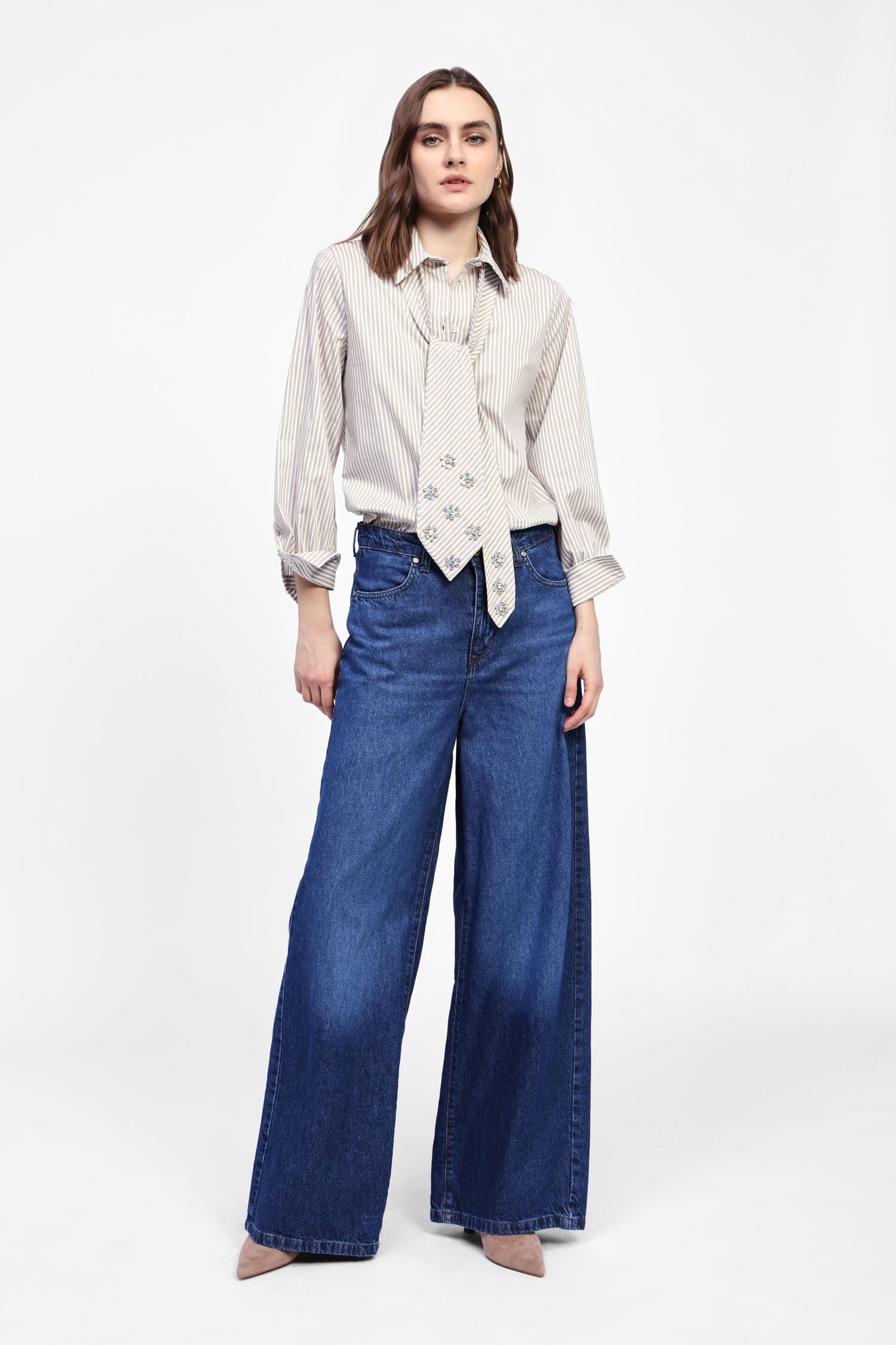 Jeans a gamba larga e vita alta baggy Un viaggio lungo il sentiero dell'originalità, questi jeans a gamba larga e vita alta abbracciano con grazia la tua figura, lasciando spazio alla creatività di chi li indossa. Perfetti per una passeggiata in città o un caffè con le amiche, sono il riflesso di un carattere che non teme di esprimersi con sicurezza e stile.