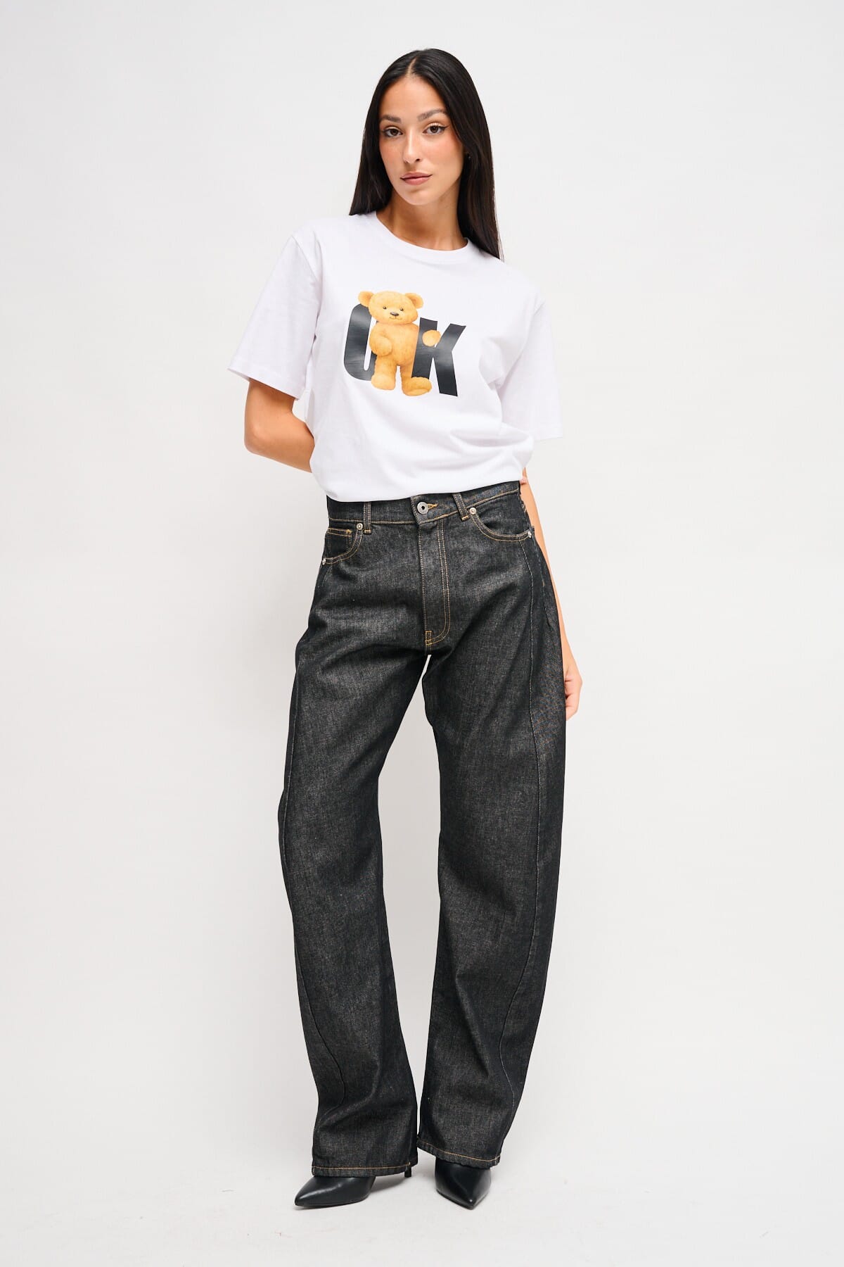 Maryley firma un denim a gamba ampia e vita media: fit rilassato che slancia senza rinunciare al comfort. Tela di cotone compatta con mano morbida. Cuciture a contrasto e piega stirata frontale definiscono la silhouette. Perfetto dall’ufficio al weekend, con sneakers o tacchi per un twist urbano.