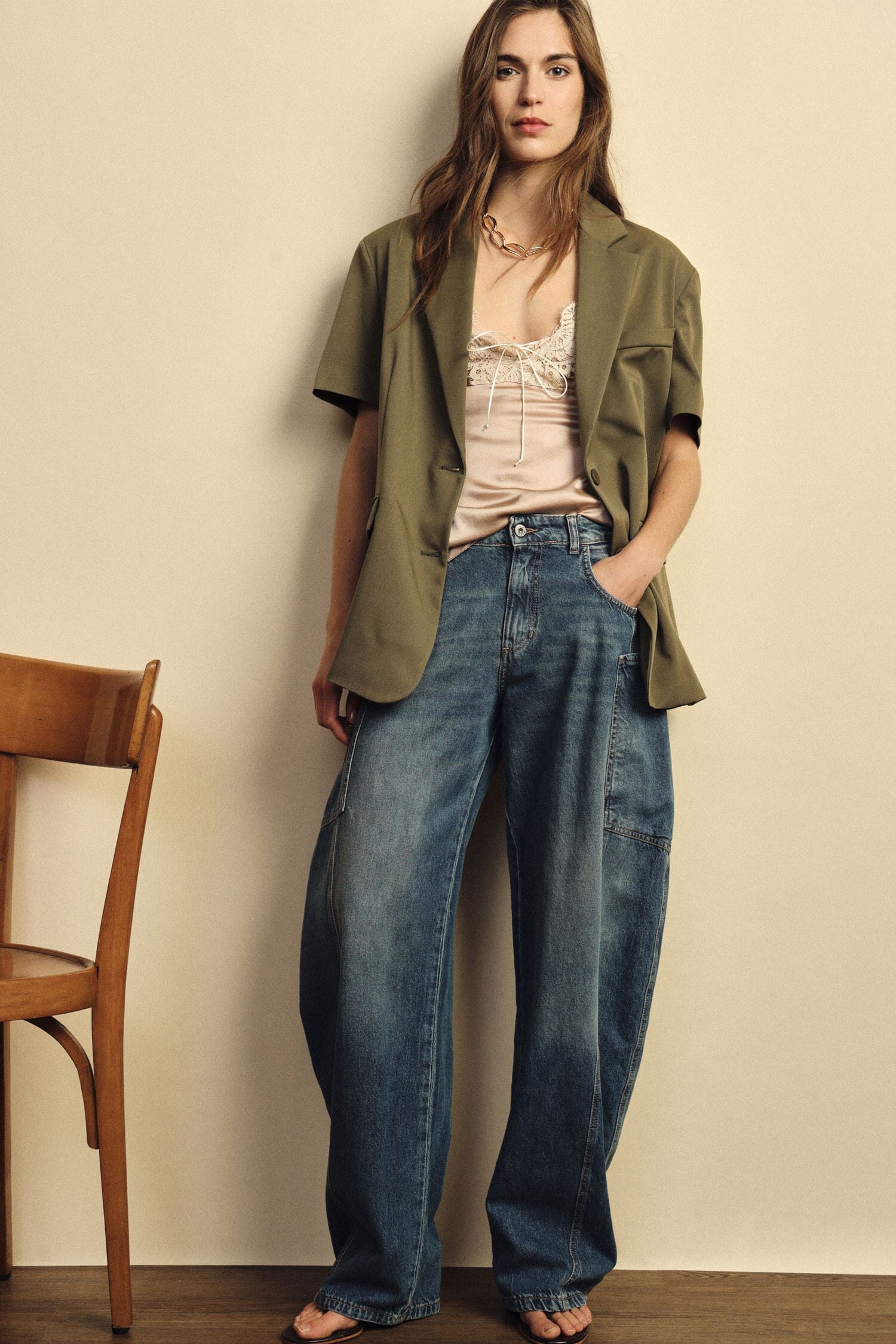 Gioca con le linee morbide dei jeans balloon dal taglio ampio e struttura originale. Le tasche laterali extra large aggiungono carattere e praticità, perfette per dare un tocco diverso al tuo look quotidiano. Sono ideali per chi cerca comodità senza rinunciare a dettagli distintivi e un po' di personalità.