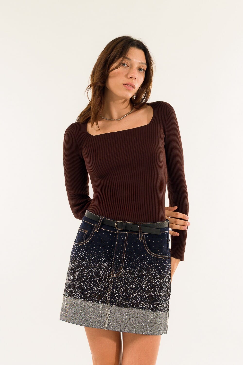 Linee essenziali e fibra stretch abbracciano la silhouette con una sensualità discreta. L’ampio scollo valorizza il décolleté, rendendo ogni look distintivo e raffinato. Un capo versatile, pensato per chi ama distinguersi con eleganza.