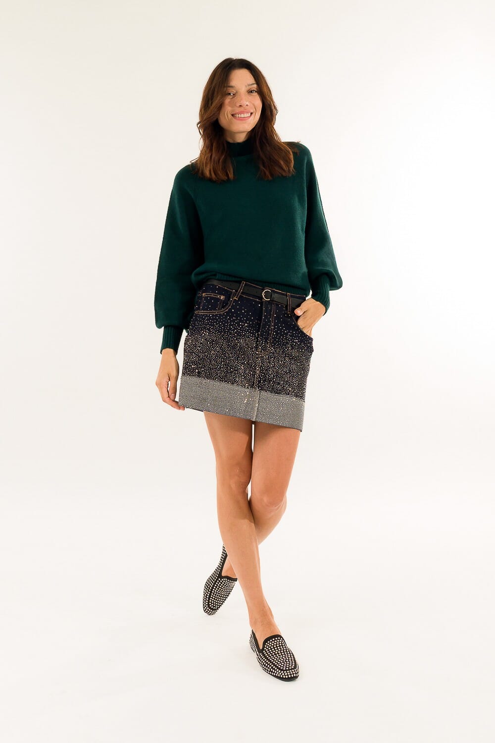 Lasciati conquistare dall’allure ricercata di questa gonna: il dettaglio luminoso esalta il denim con classe, conferendo un tocco glam ai tuoi look. Perfetta per distinguersi con stile, sia di giorno che di sera. Semplicemente irresistibile.