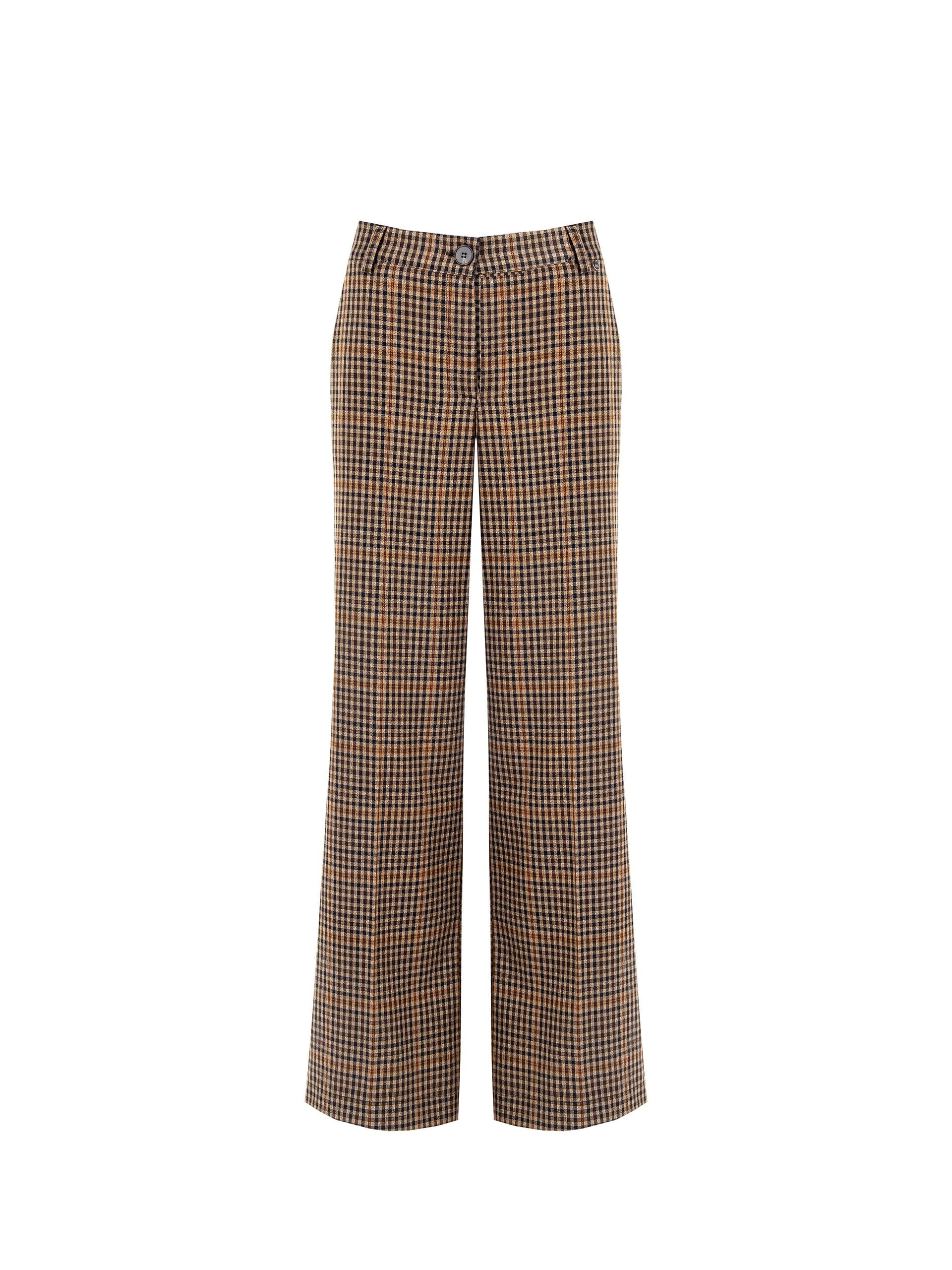 Rinascimento firma un capo dal taglio dritto e gamba ampia, confortevole e slanciata. Tessuto check in misto viscosa con una mano morbida e compatta. Vita medio‑alta con passanti e chiusura a bottone, piega stirata che definisce la linea. Perfetto per l’ufficio e per look everyday dal carattere deciso.