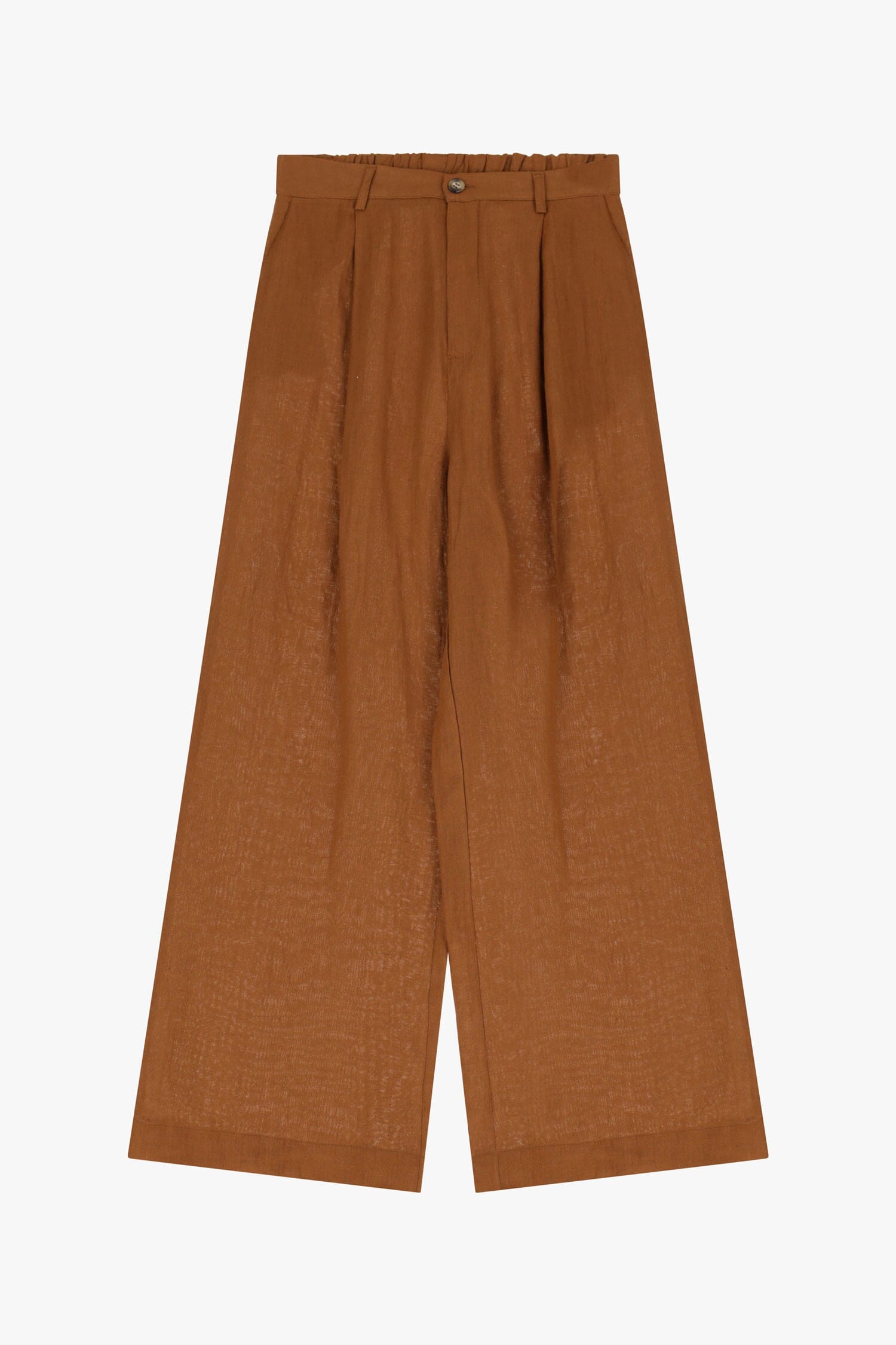 La silhouette morbida di questi pantaloni a gamba ampia offre libertà di movimento e un tocco di sofisticata nonchalance. La vita alta incornicia la figura, mentre i dettagli del bottone aggiungono funzionalità. Ideali per un look rilassato ma ricercato, perfetto per ogni occasione, da una giornata in ufficio a una passeggiata in città.