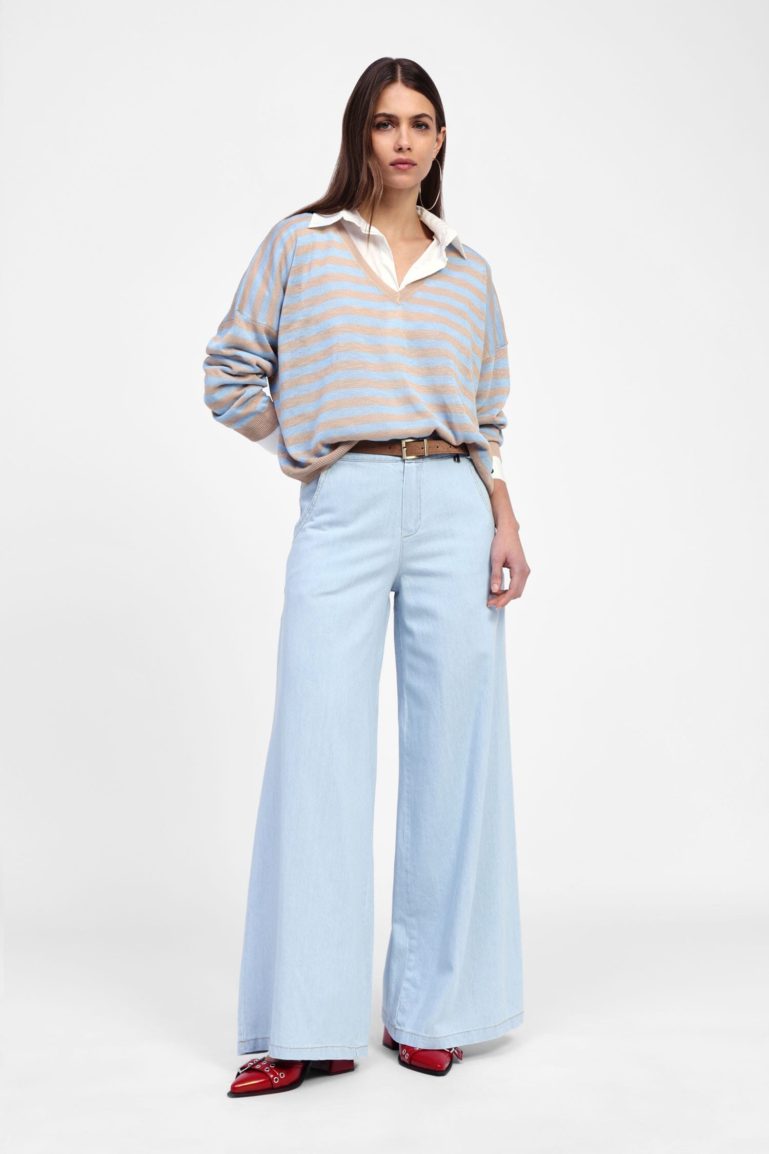 Pantaloni palazzo con vita alta e tasche chino