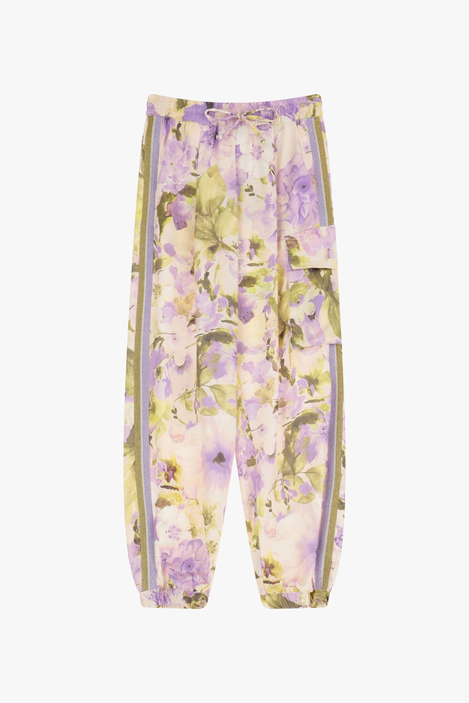 Questi pantaloni abbinano comfort quotidiano e design audace, grazie alla stampa floreale che li contraddistingue. La vita elastica e le pratiche tasche laterali offrono funzionalità, mentre il taglio rilassato garantisce una vestibilità comoda. Perfetti per chi cerca di unire eleganza casual e praticità, illuminano il tuo guardaroba con un tocco creativo.