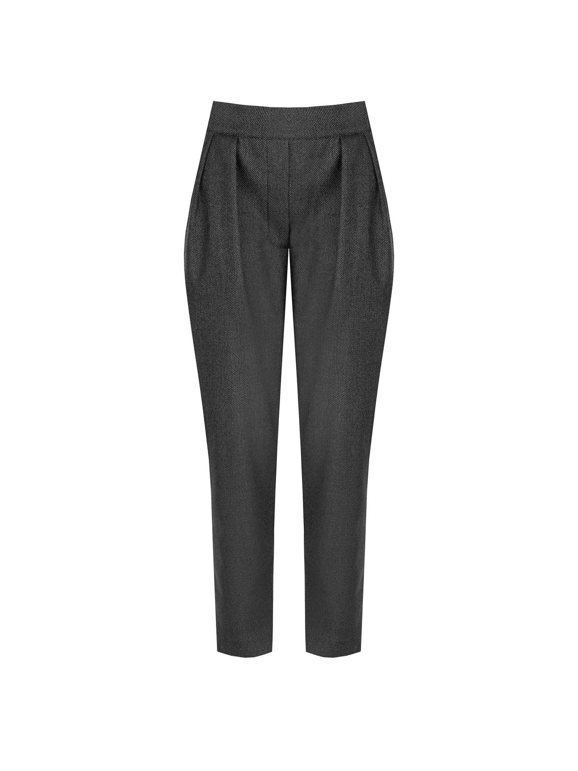 Pantaloni modello carrot, realizzati in tessuto jacquard. I pantaloni hallo le pinces e le tasche alla francese. Chisusura tramite zip invisibile laterale. Abbina ai pantaloni al gilet nel medesimo tessuto.